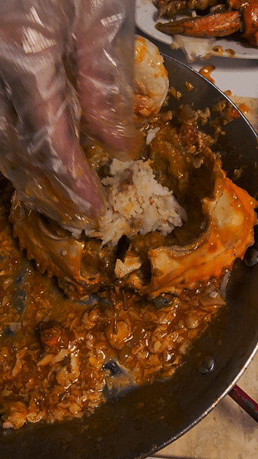 크랩 뚜껑에 밥도 야무지게 비벼줬습니다.