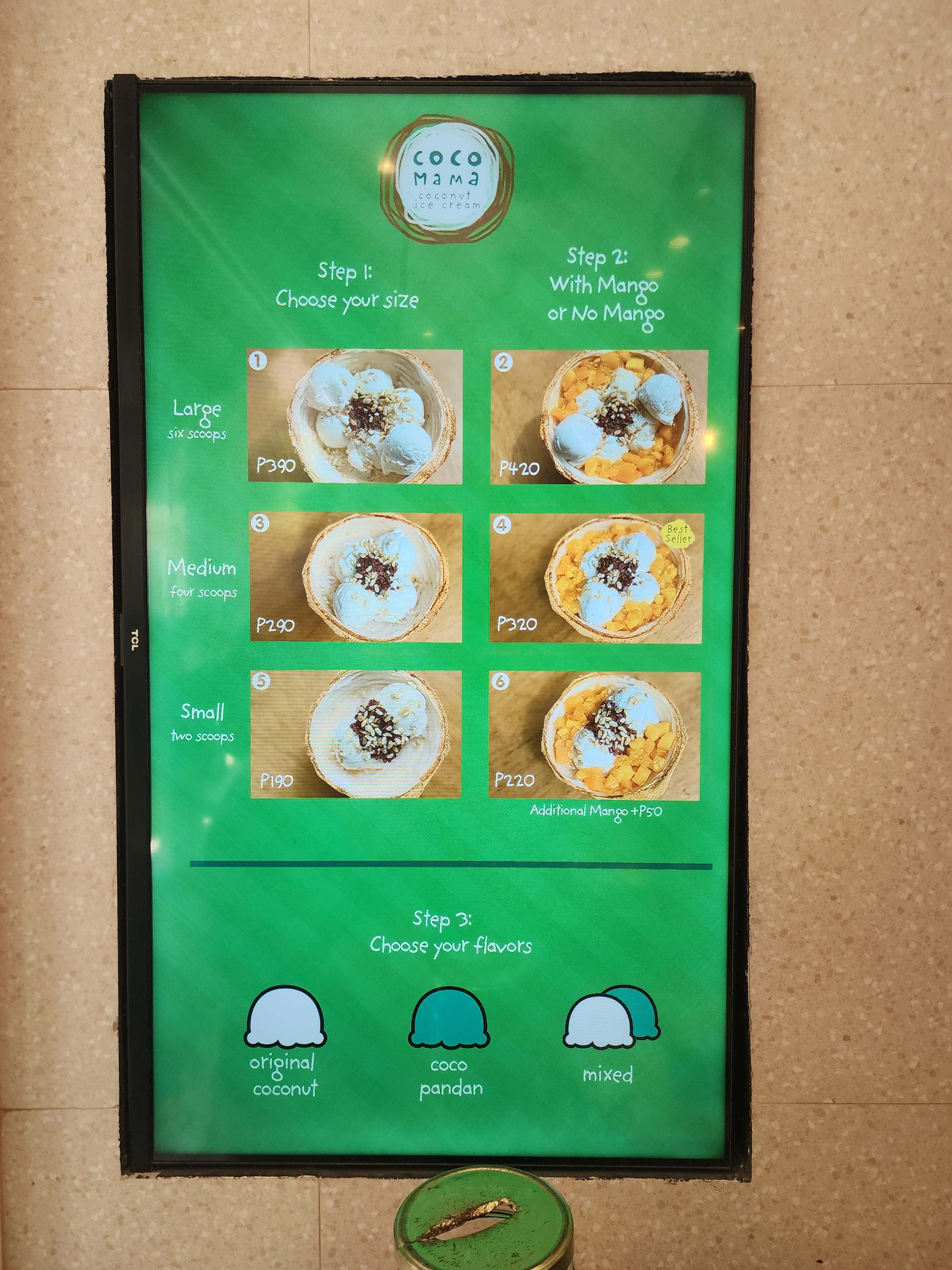 보라카이 코코마마 메뉴 및 가격입니다.