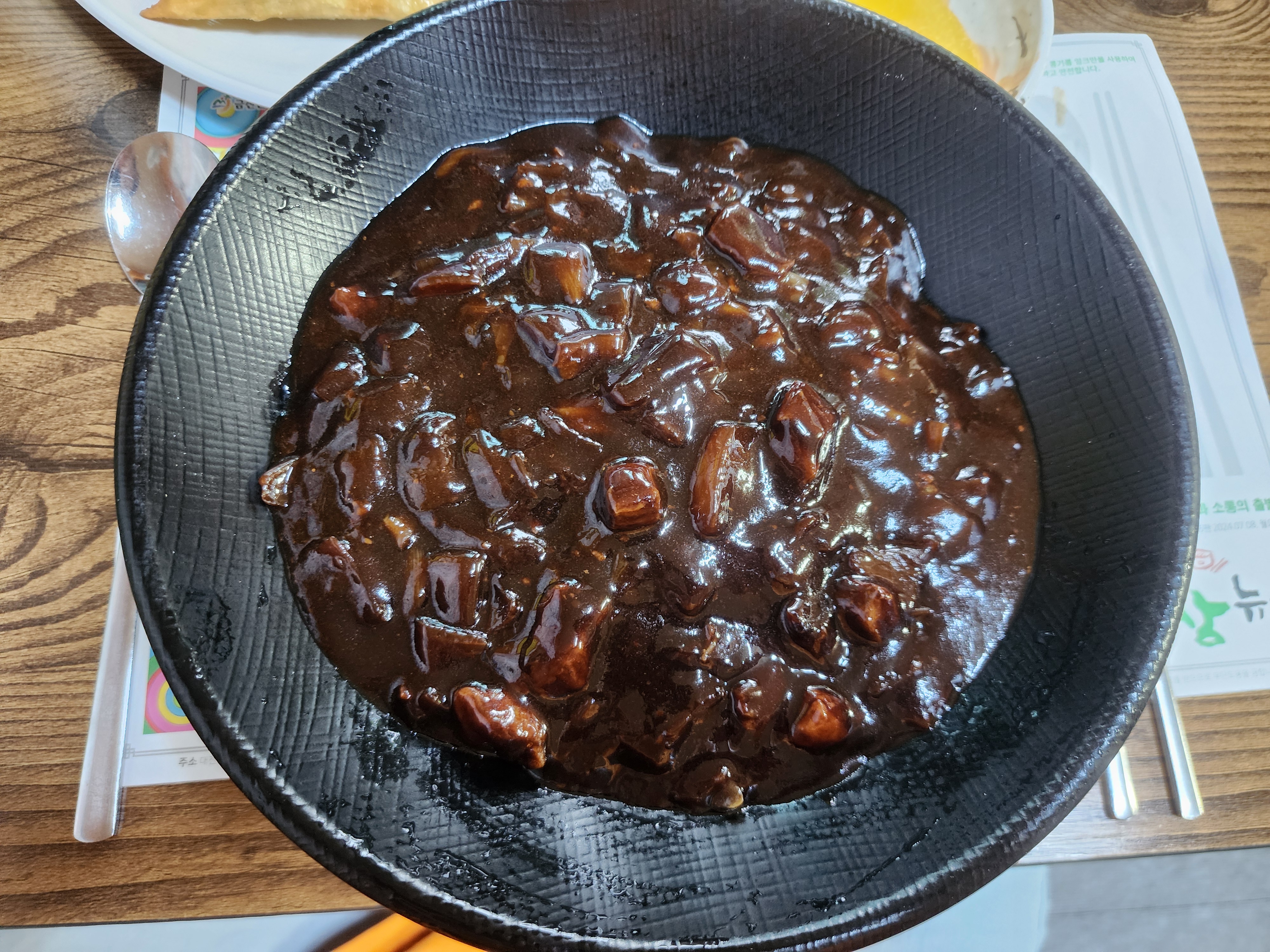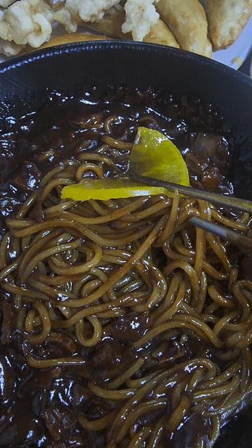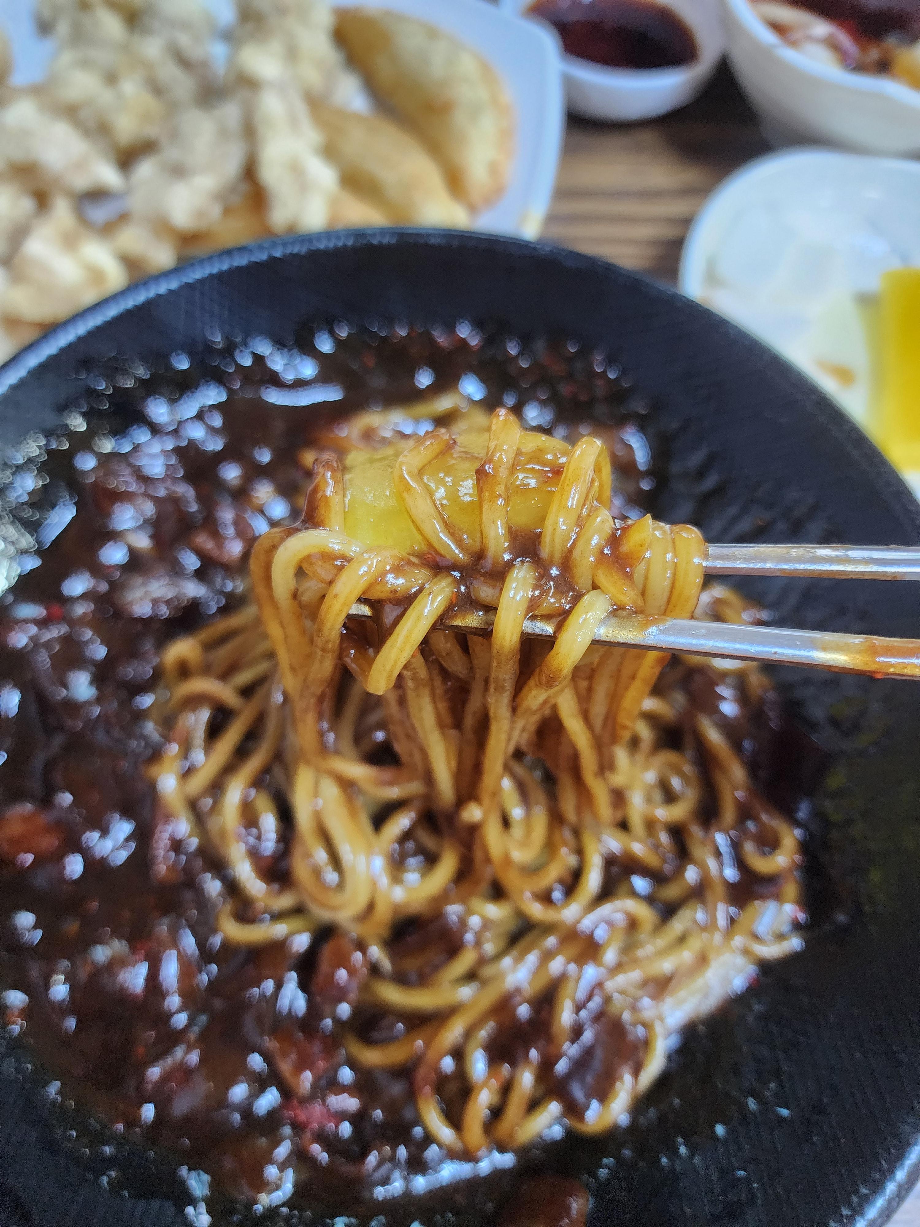 짜장면은 면이 두꺼워도 나쁘진 않지만 저는 얇은 게 그래도 좋습니다.