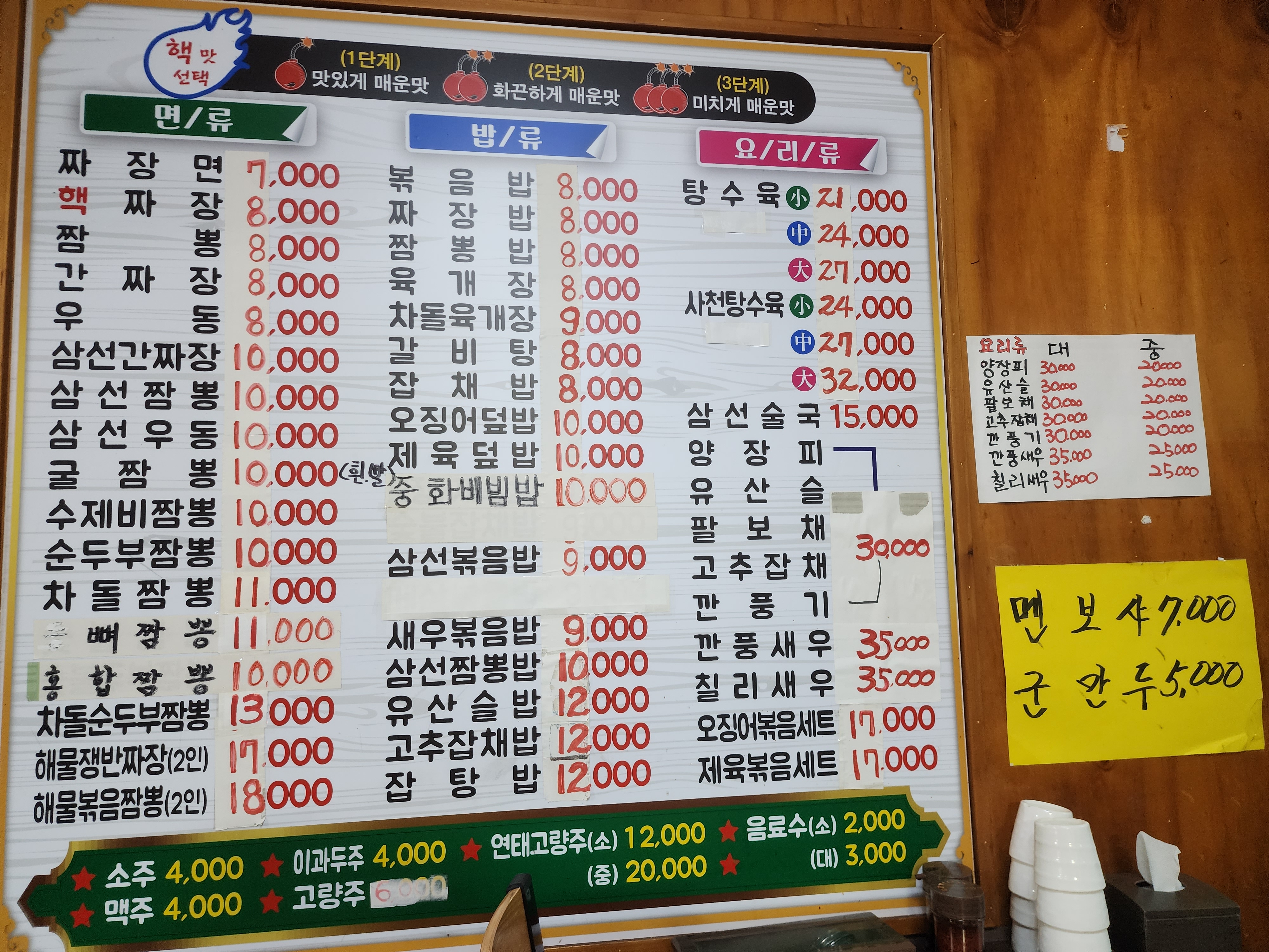 짬뽕 메뉴가 좀 많고 매운맛도 선택할 수 있습니다.