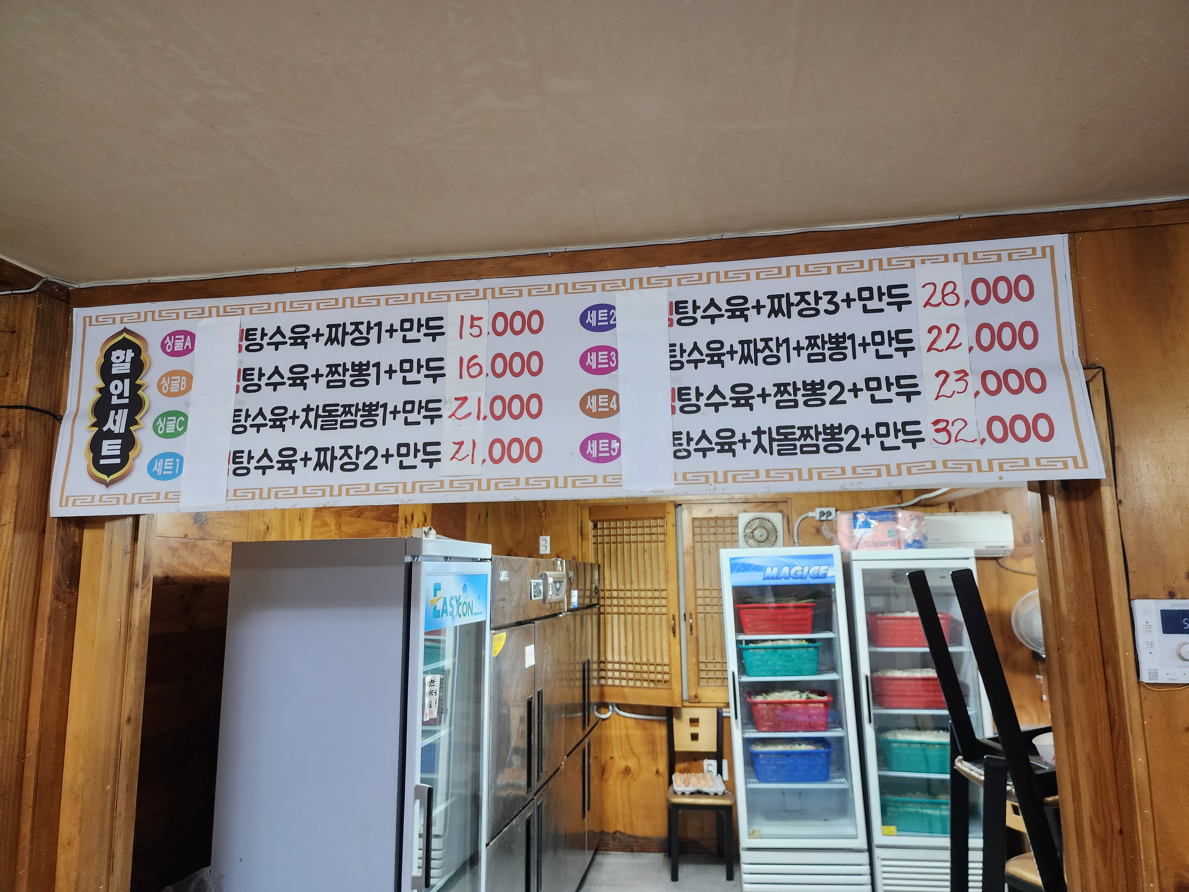 저희는 세트 1을 시켰고 짜장을 짬뽕으로 하나 바꿨습니다.