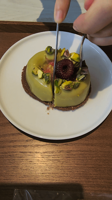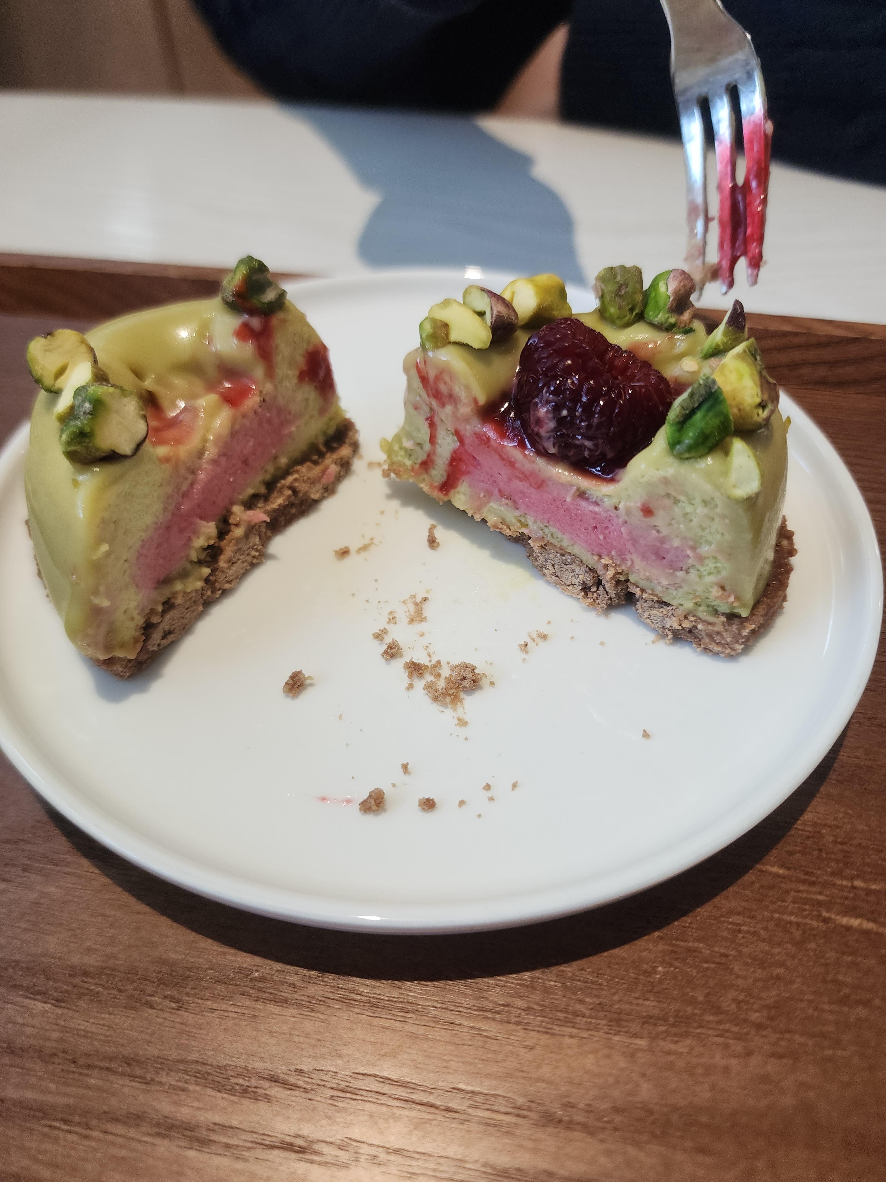 피스타치오의 맛과 산딸기의 맛이 절묘하게 잘 섞여서 너무 맛있습니다.