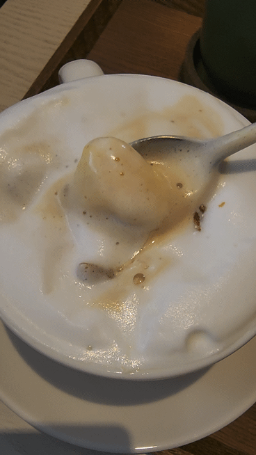 이 정도 먹다 보면 아몬드 누가가 완전히 스며들어서 음료를 마실 때 아몬드가 호로록 같이 먹어집니다.