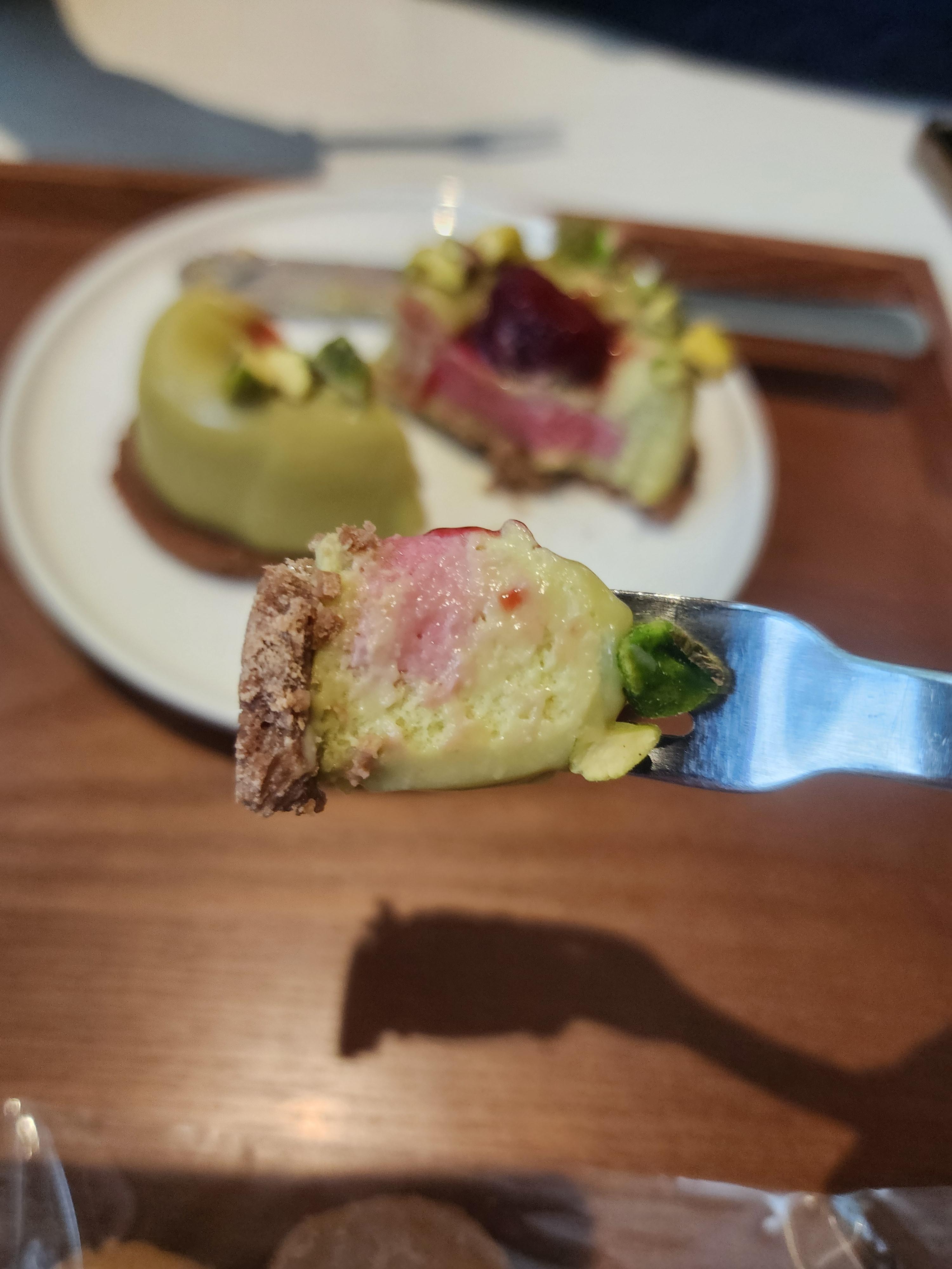 피스타치오도 얹어서 야무지게 한 입 먹었습니다.