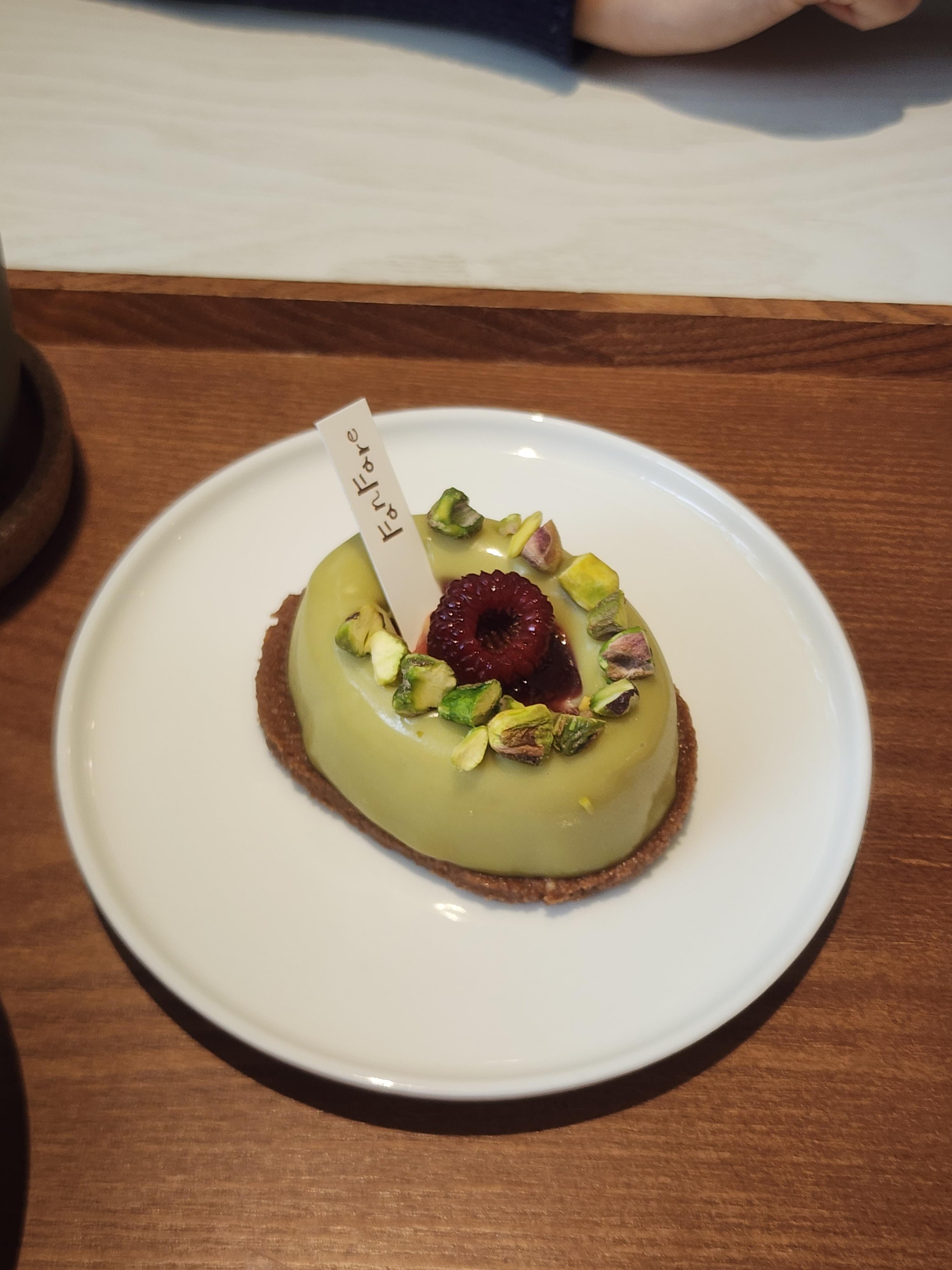 피스타치오 무스에 피스타치오가 쫑쫑쫑 올라가 있어서 너무 이쁩니다.