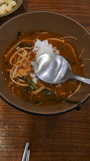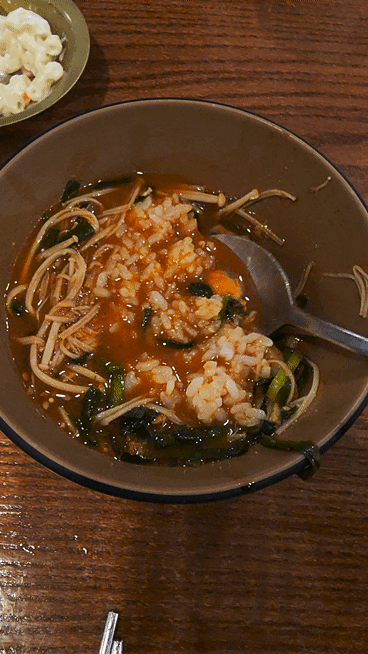 밥과 소면 둘 다 좋아하지만 같이 온 분들 중에 소면을 원하는 분이 있어서 밥을 말았습니다.
