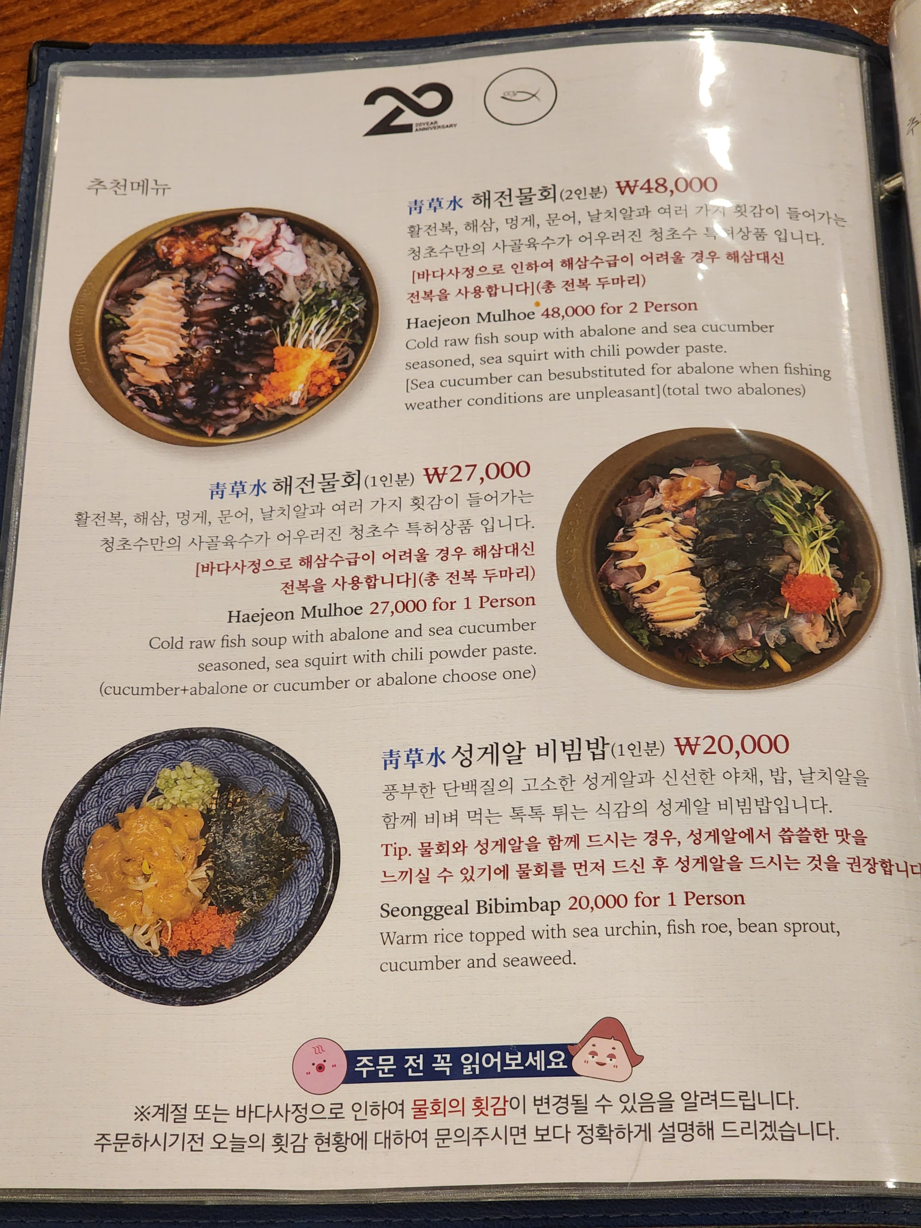 예전에 해전 물회는 먹어봤는데 섭국과 전복죽은 처음이라 맛이 어떨지 궁금하네요.