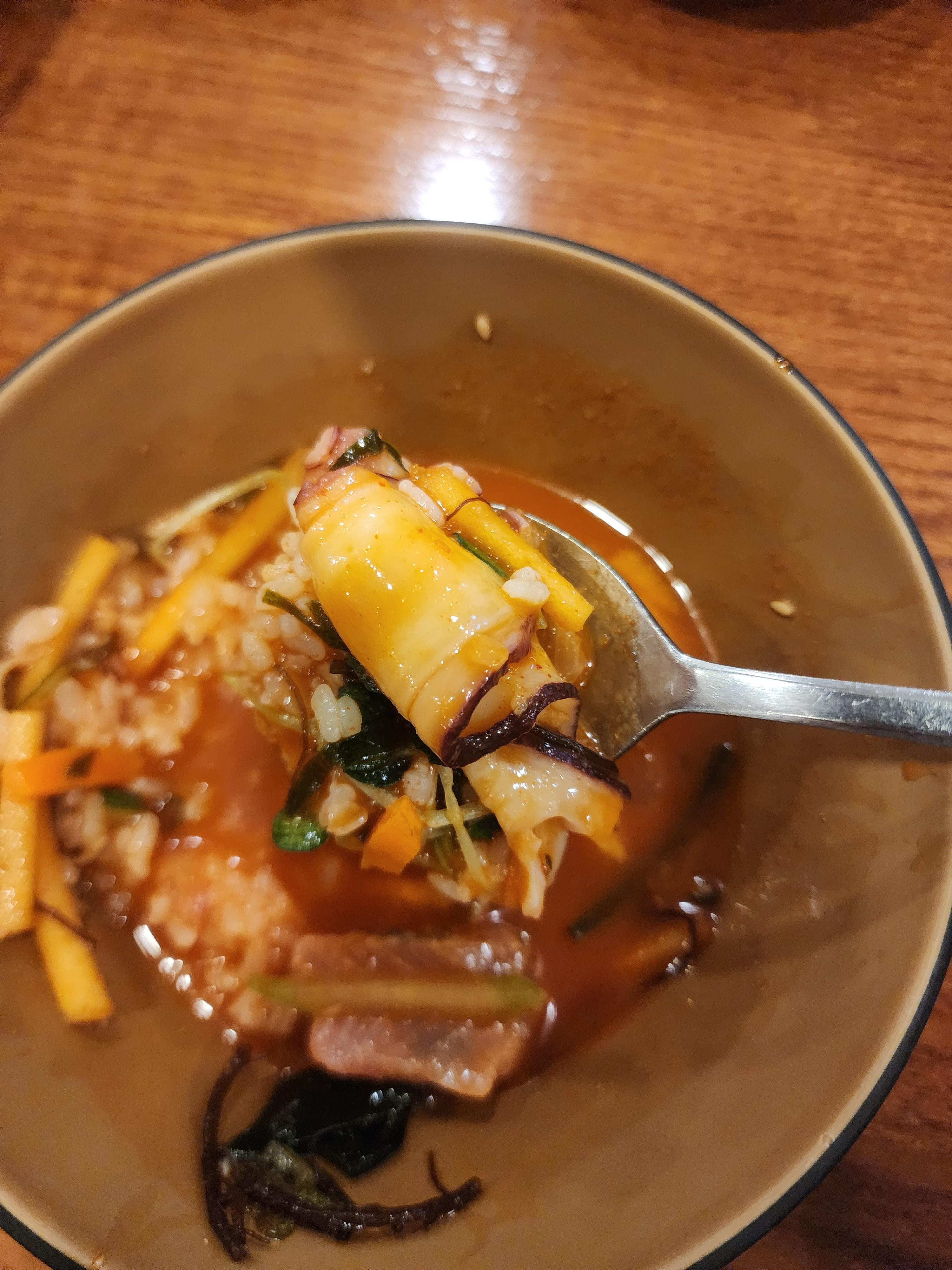 먹기 전에 육수와 해물들을 야무지게 섞어줬습니다.