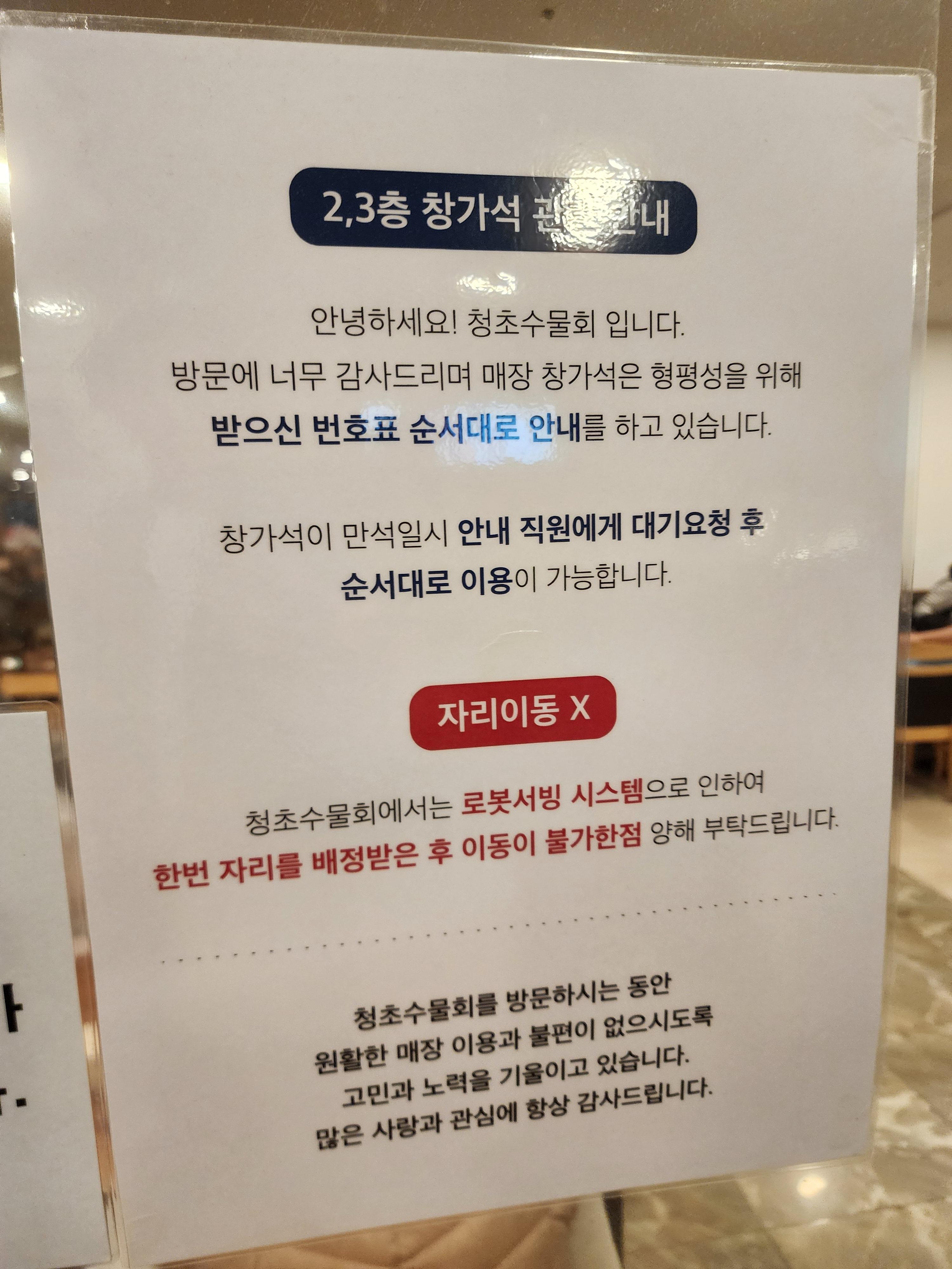 청초수물회의 서빙은 로봇이 담당을 하더라고요.