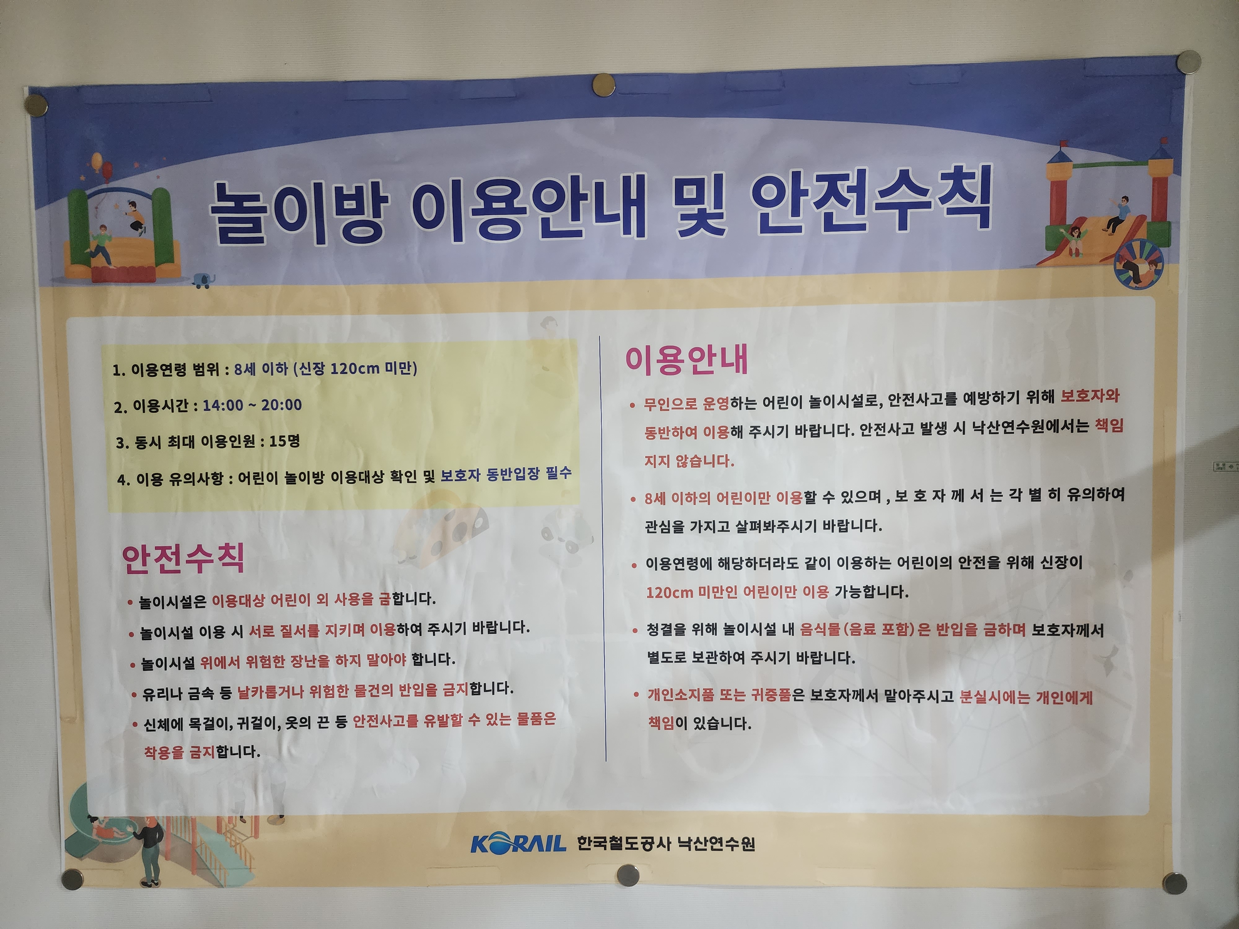 놀이방 이용안내 및 안전수칙입니다.