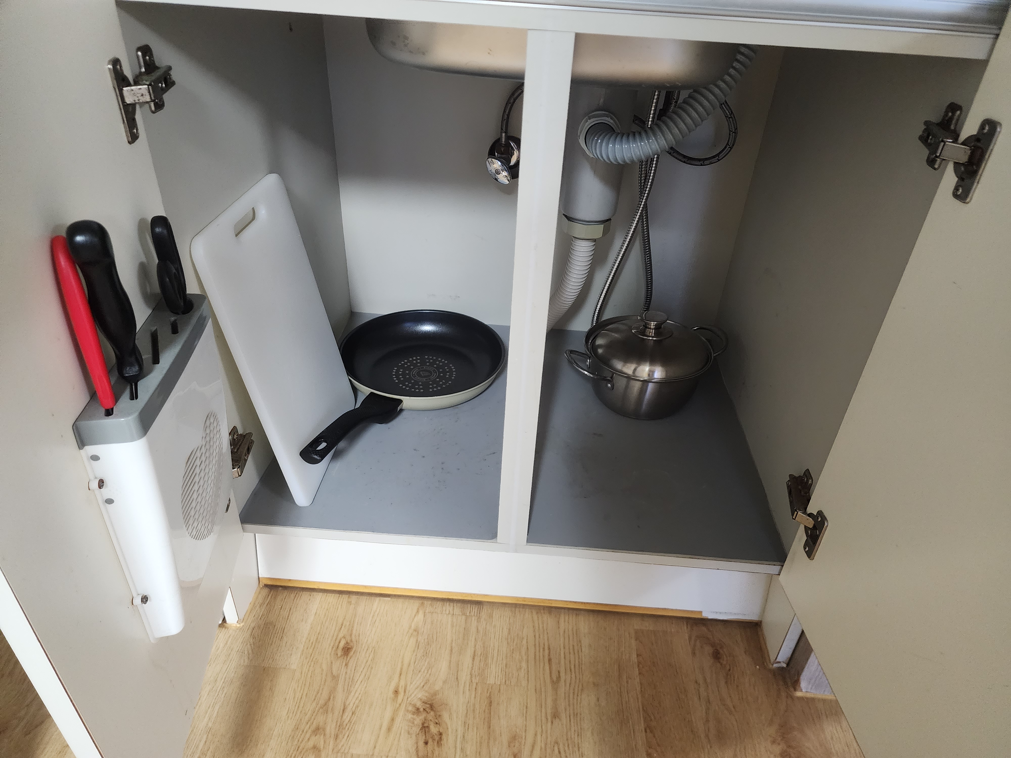 접시와 그릇, 냄비, 프라이팬, 칼, 가위 등 다양한 도구도 많았습니다.