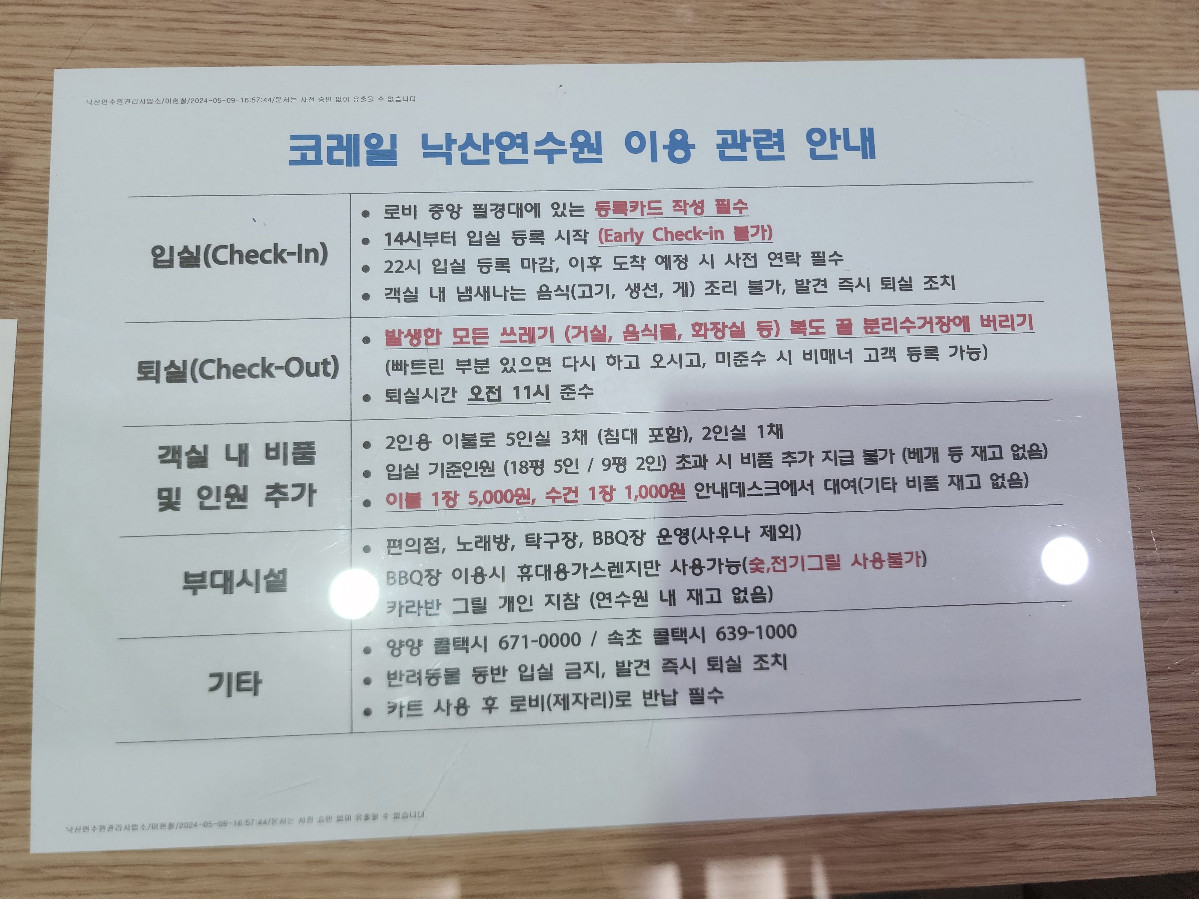 체크인 같은 경우 22시에 등록 마감이기 때문에 늦을 시 미리 연락을 줘야 합니다.