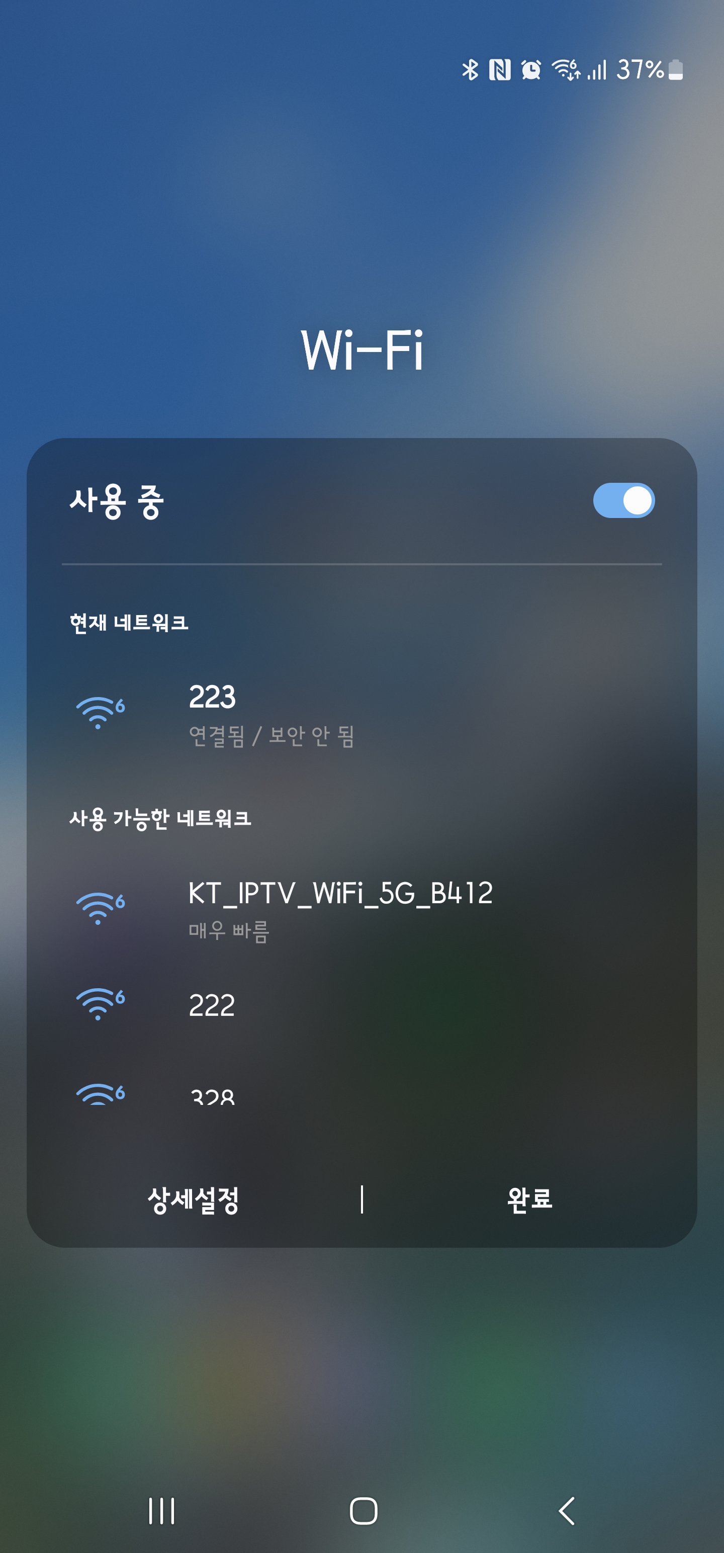 와이파이를 누르니 숫자가 나오는데 호실 별로 와이파이가 있는 것 같습니다.