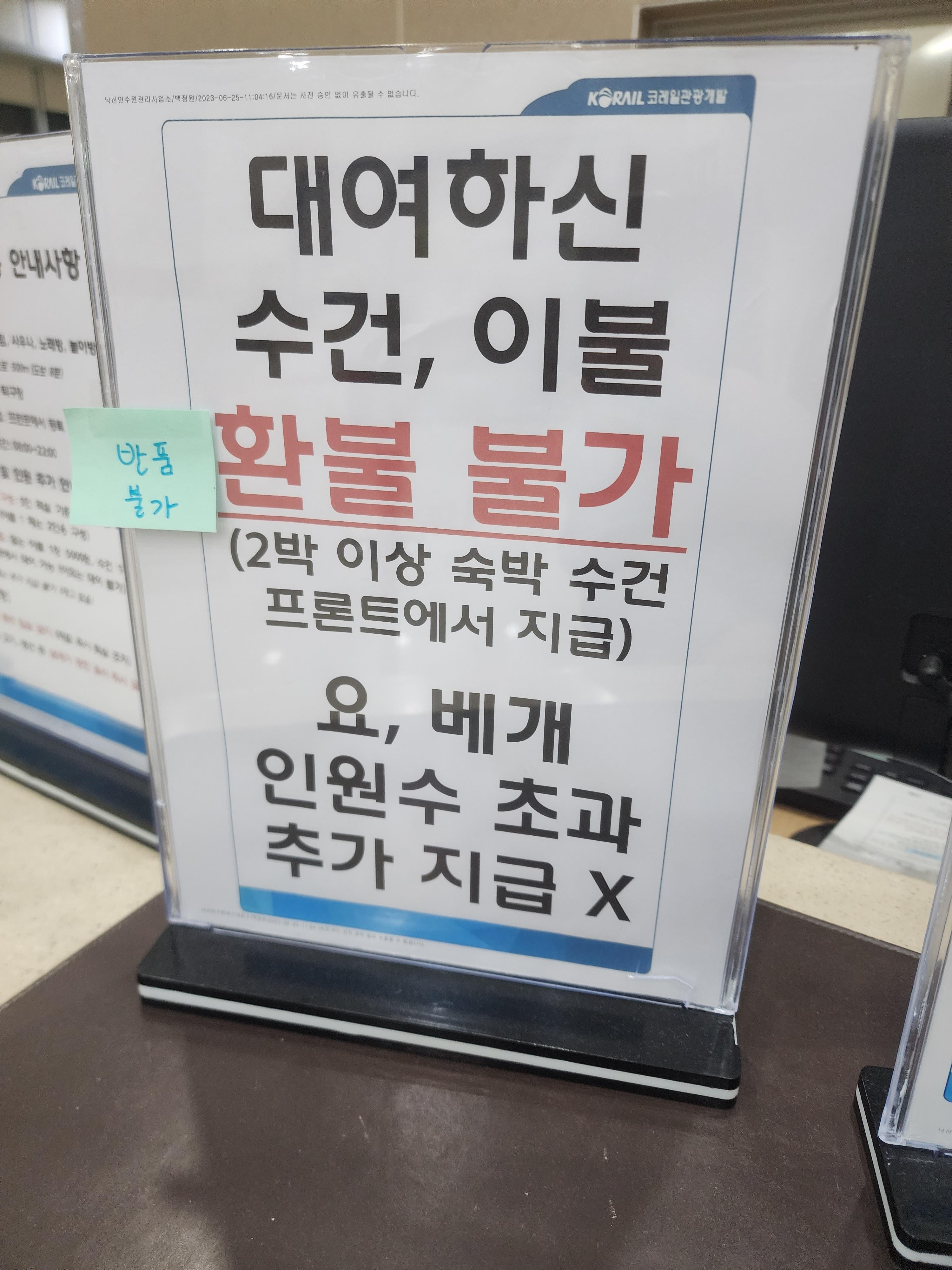 코레일 낙산 연수원 이용 시 수건, 이불, 베개 등의 개수가 정해져 있습니다.