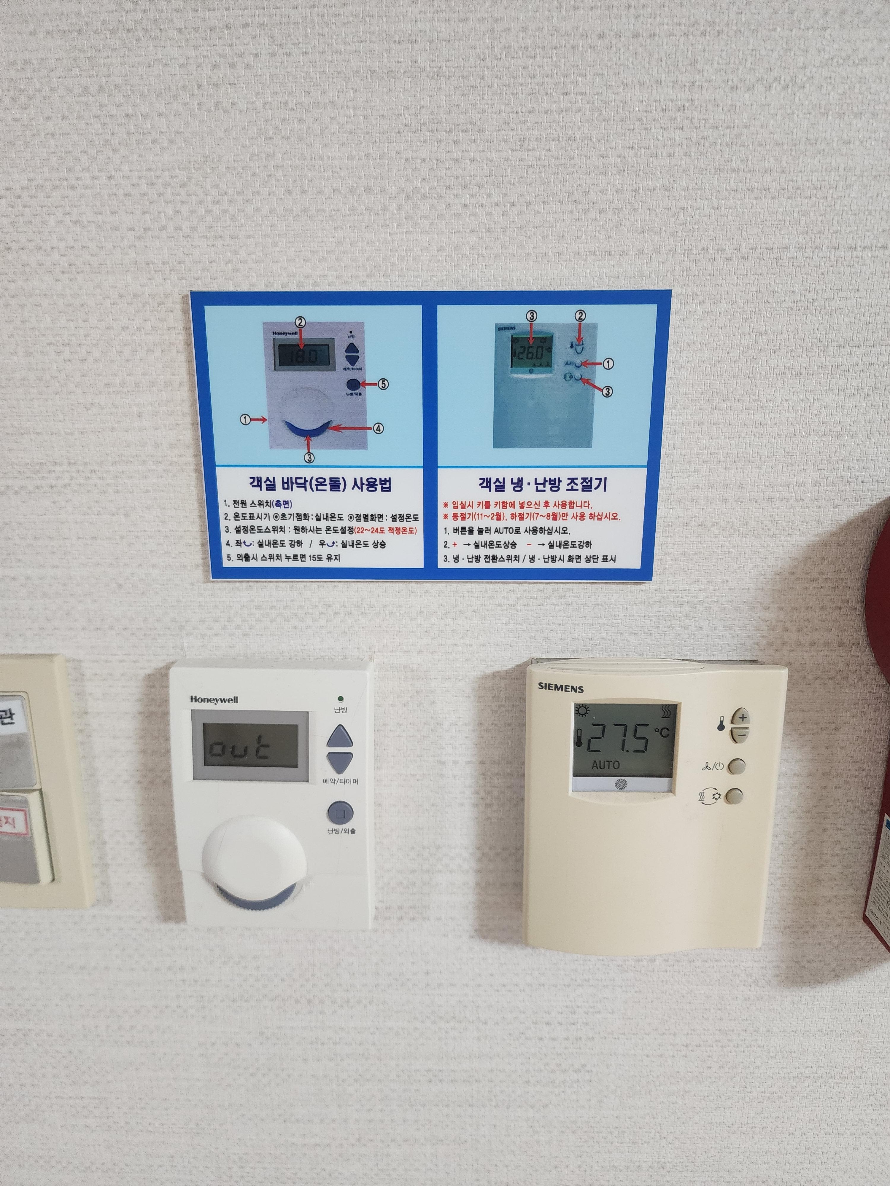숙소 내 객실 바닥과 냉, 난방 조절이 가능했습니다.