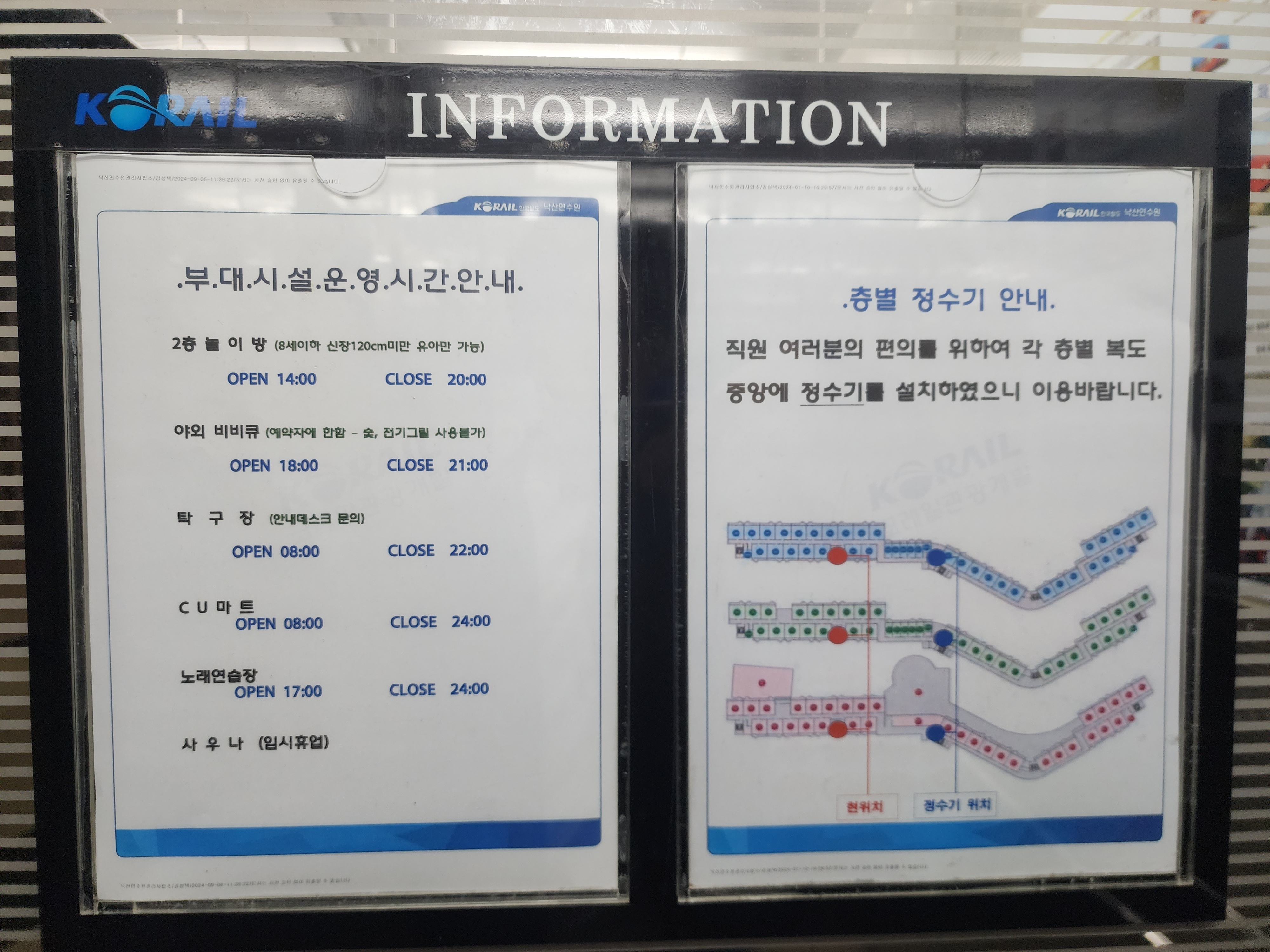 코레일 낙산연수원 부대시설 운영 시간입니다.