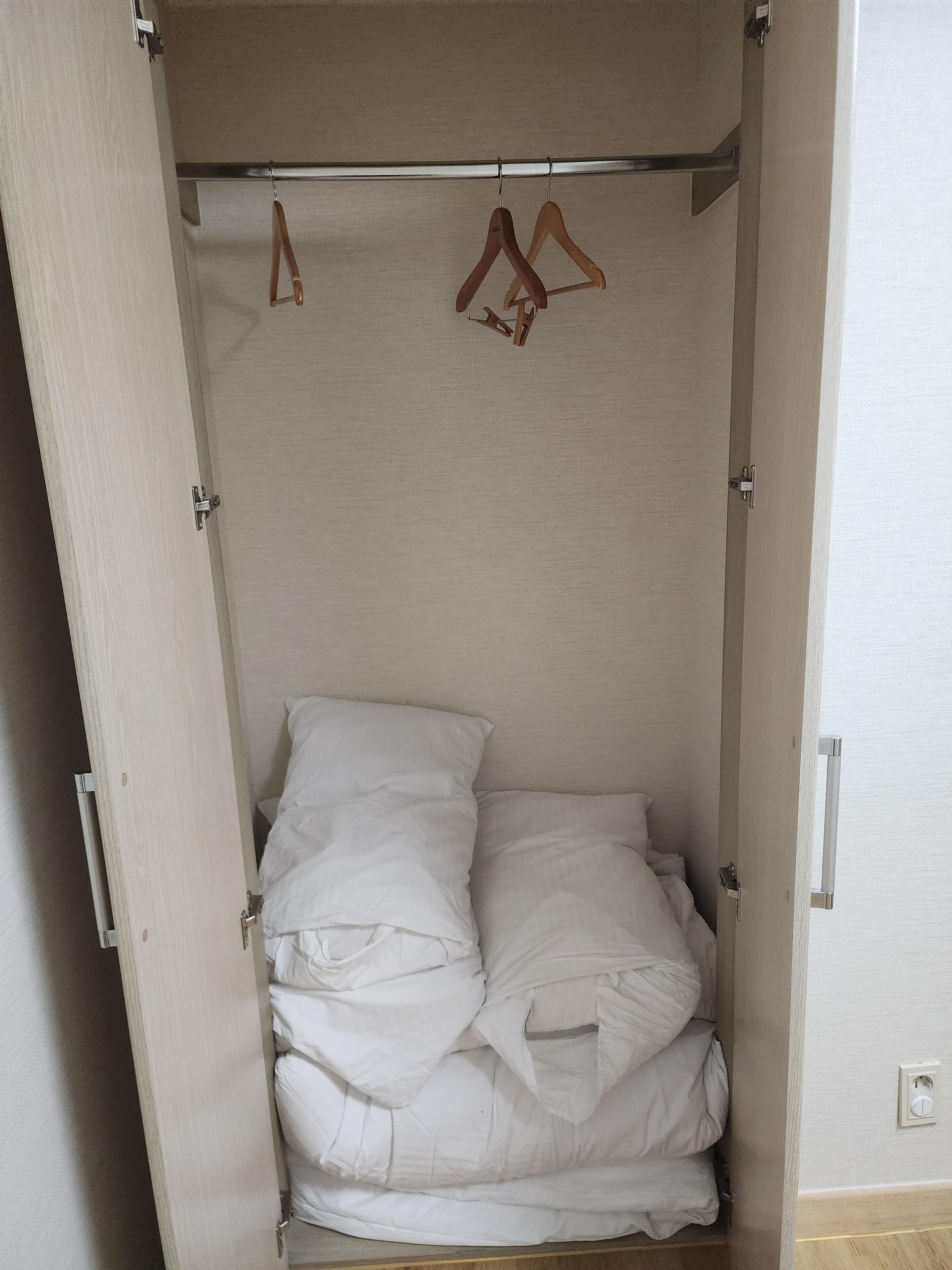 옷장 공간도 넓어서 좋지만, 옷걸이가 좀 부족한 느낌도 들었습니다.