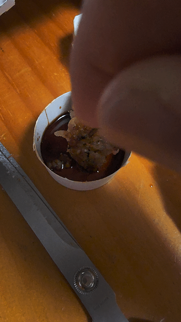 먹기 전에 같이 주셨던 간장을 콕콕 찍어줍니다.