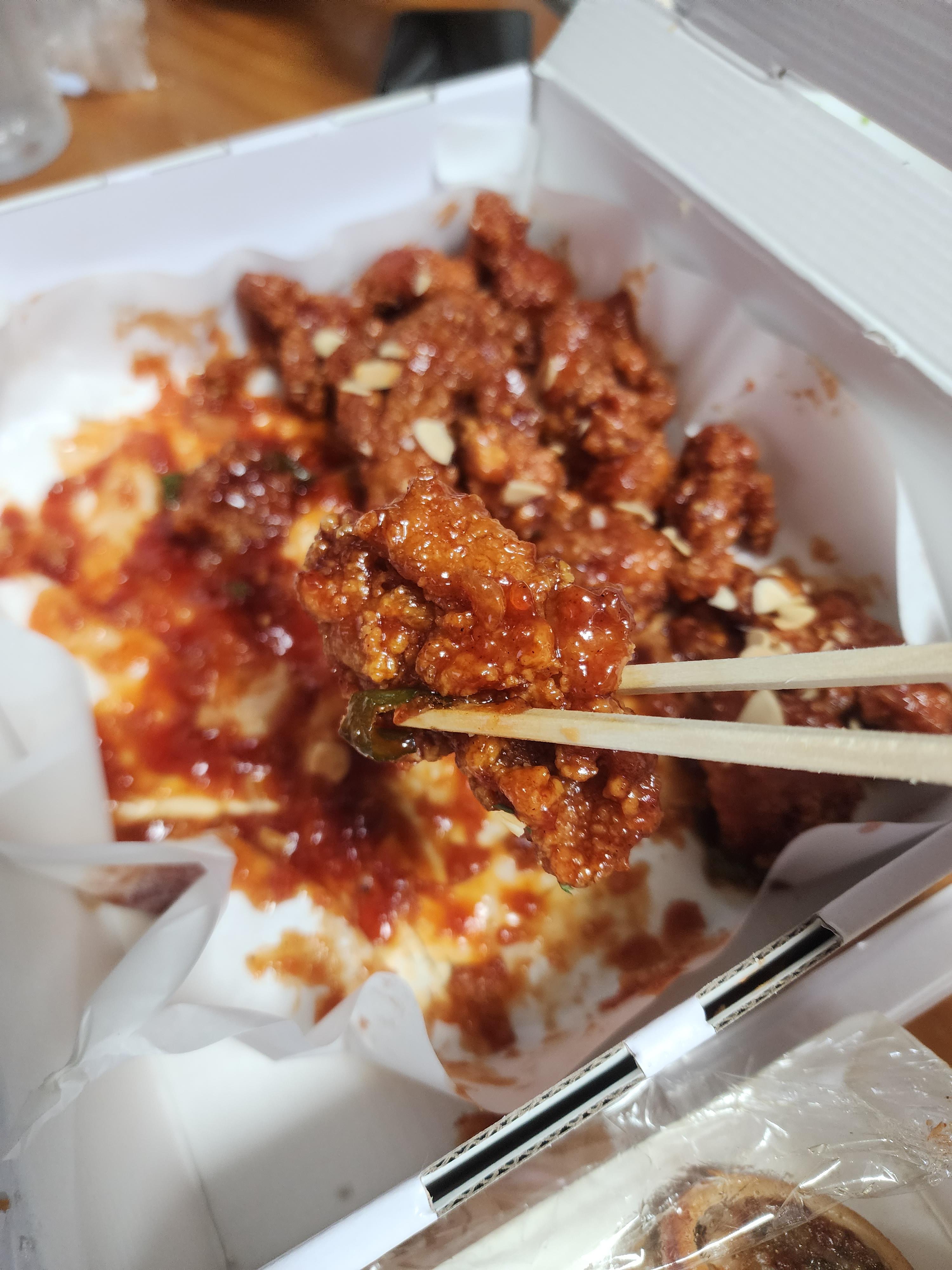 닭강정이 질기지 않고 단 맛도 과하지 않아서 맛이 좋습니다.