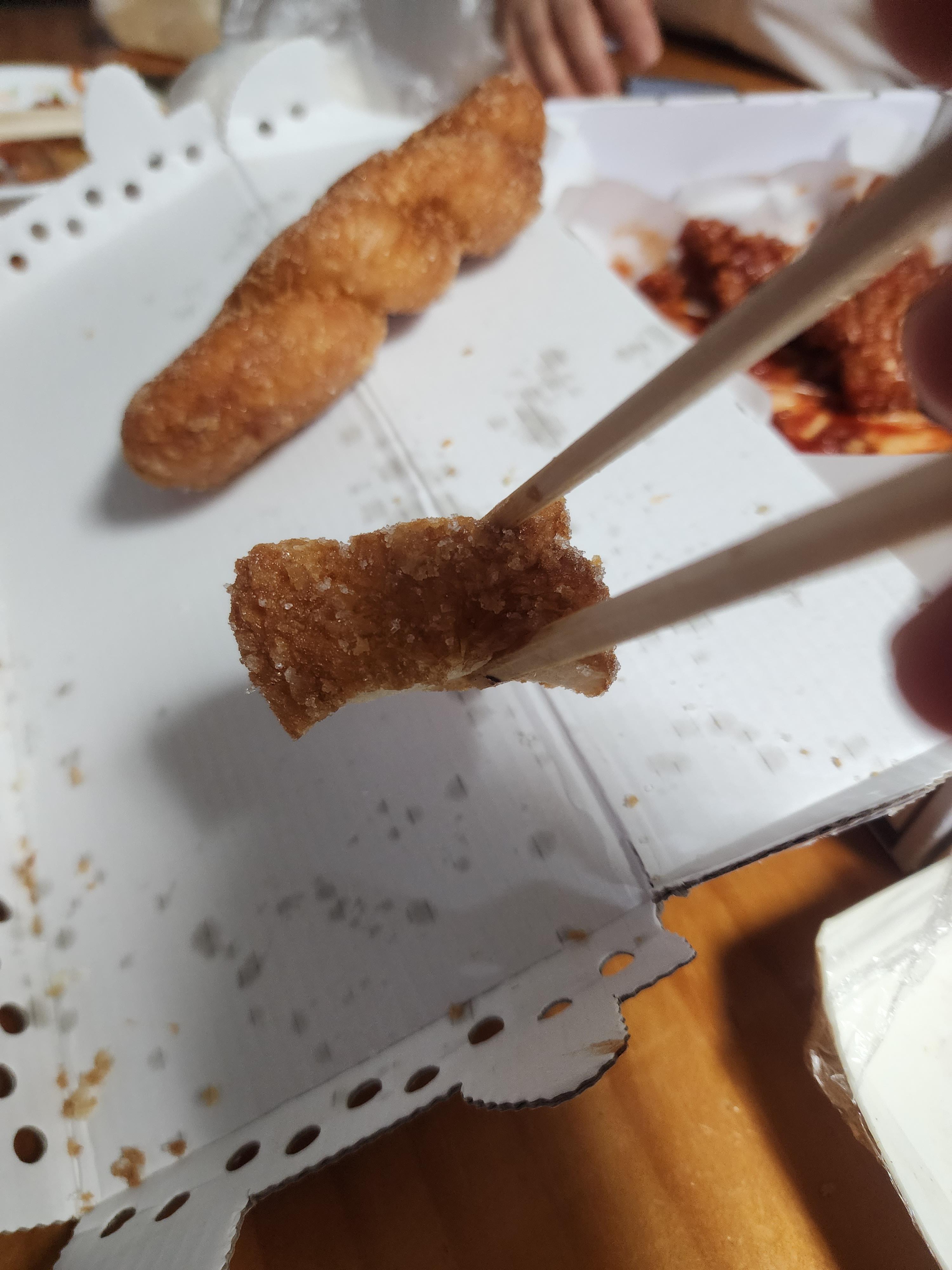 바로 닭강정 한 입 먹어봤는데요.