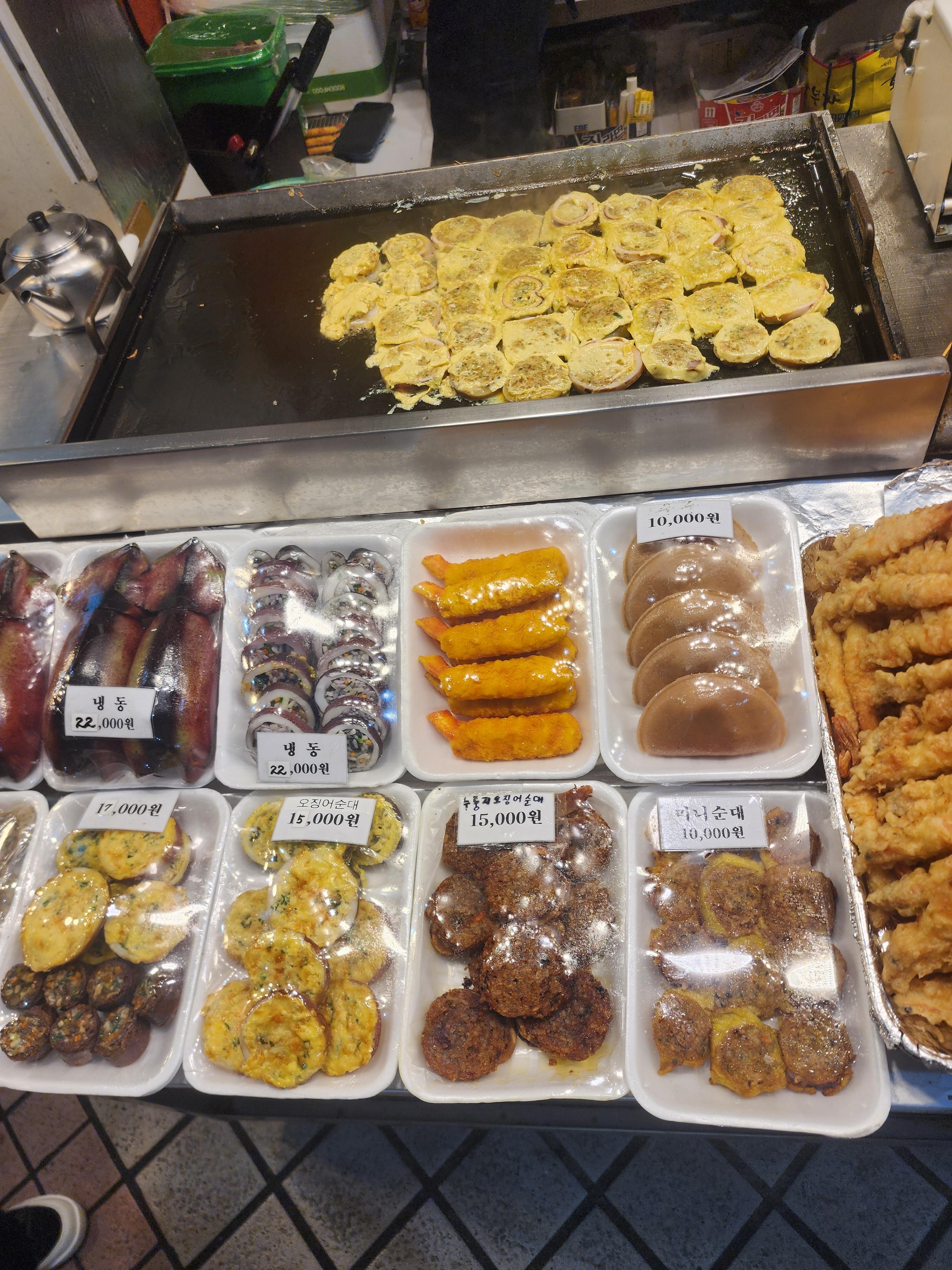 예전에는 속초시장에서 닭강정과 오징어순대만 샀던 것 같은데 다른 먹거리들이 많아졌더라고요.