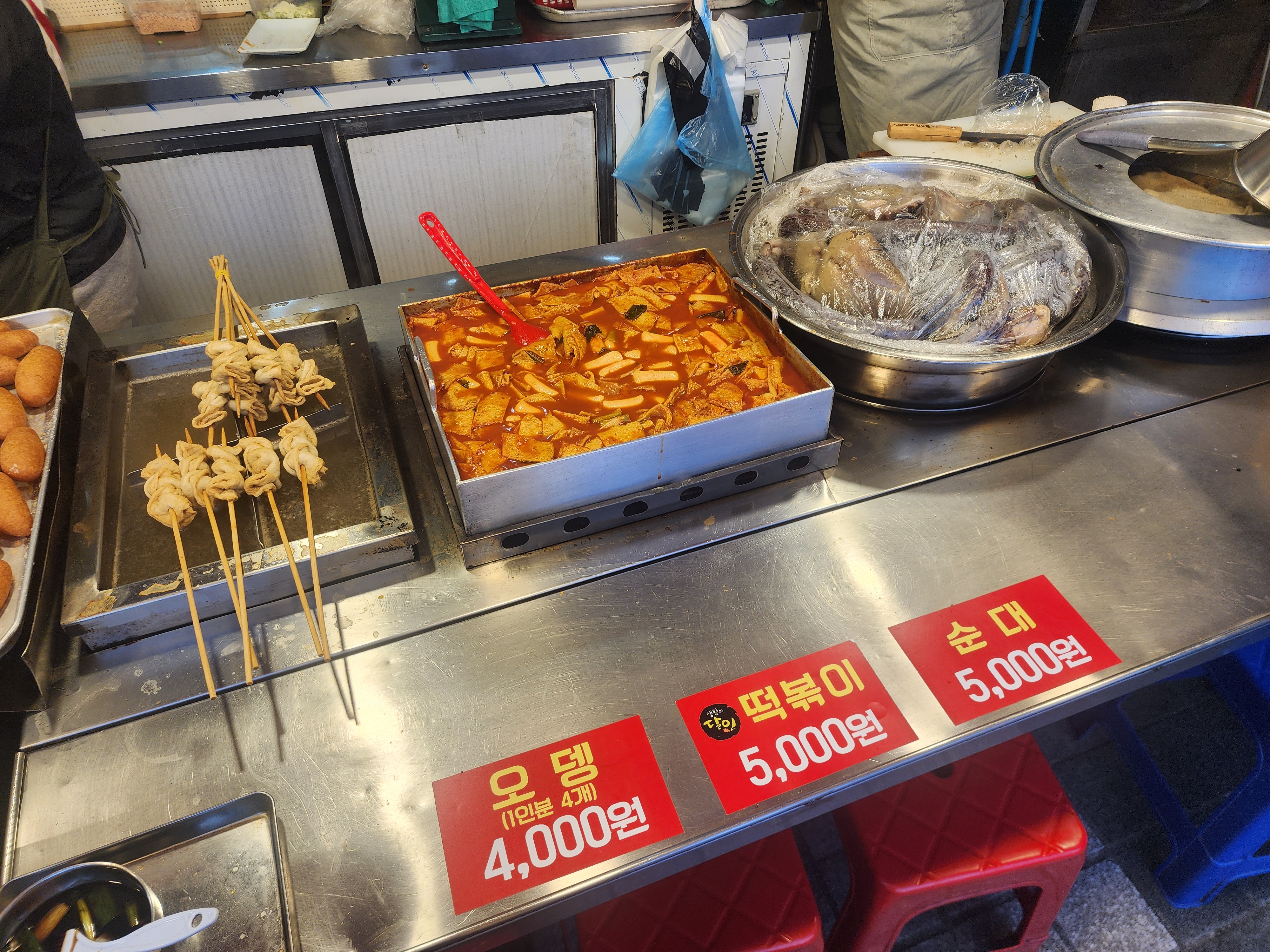 떡볶이, 오뎅, 순대를 판매하는데 가격은 괜찮은 편입니다.