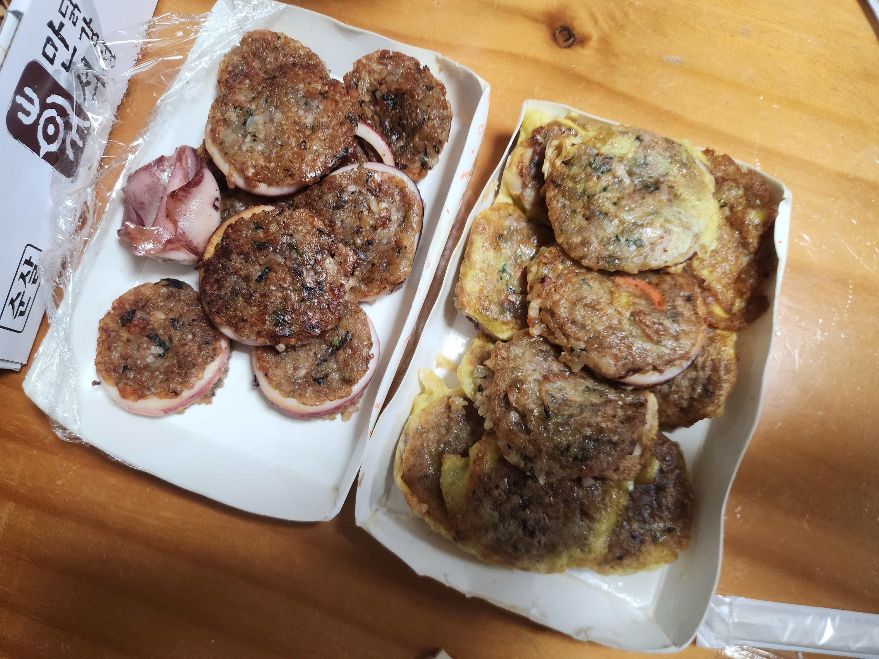 그리고 예전에는 계란물만 묻은 오징어순대만 있었는데 이번에 왔더니 누룽지 오징어순대가 있더라고요.