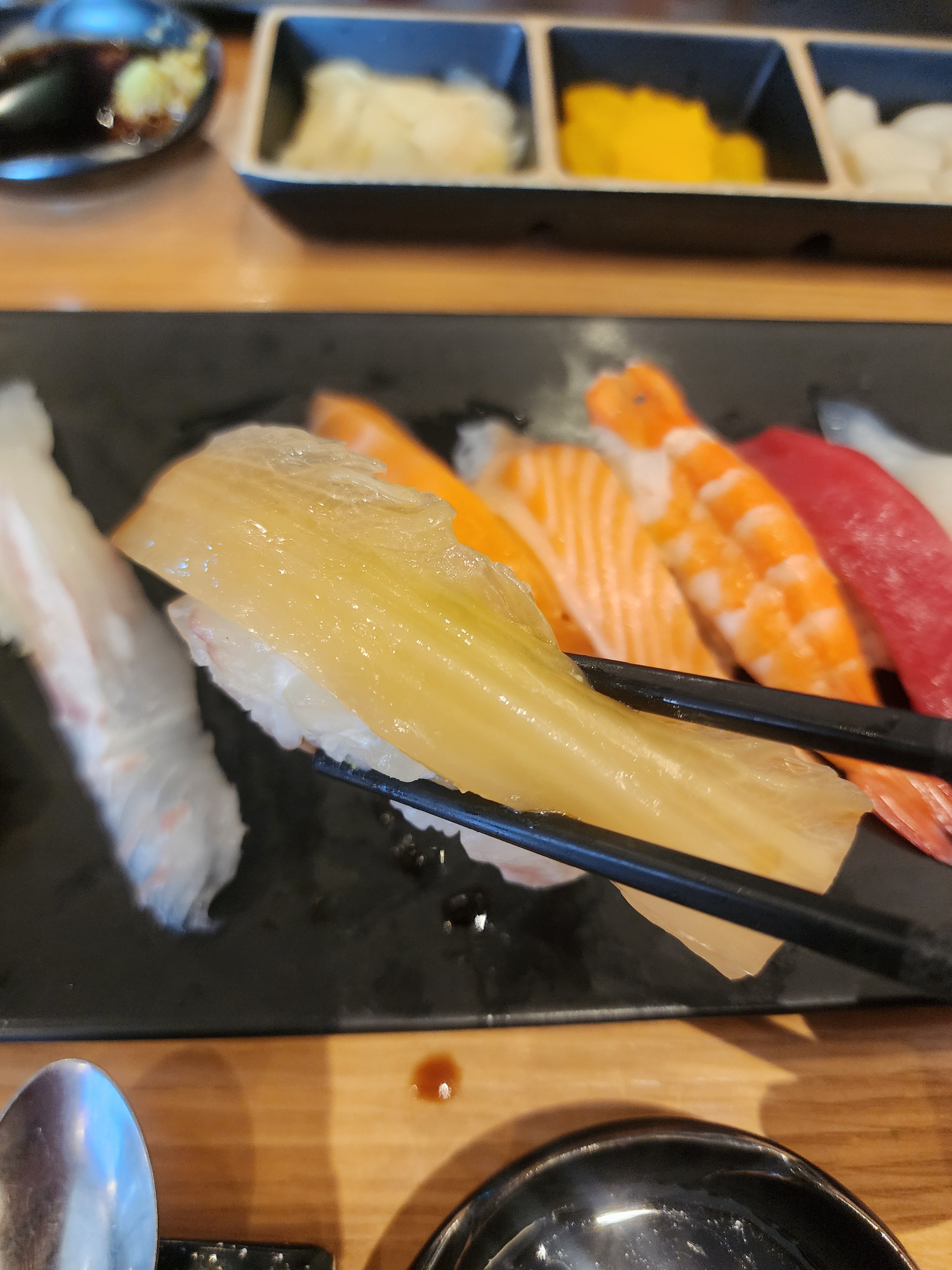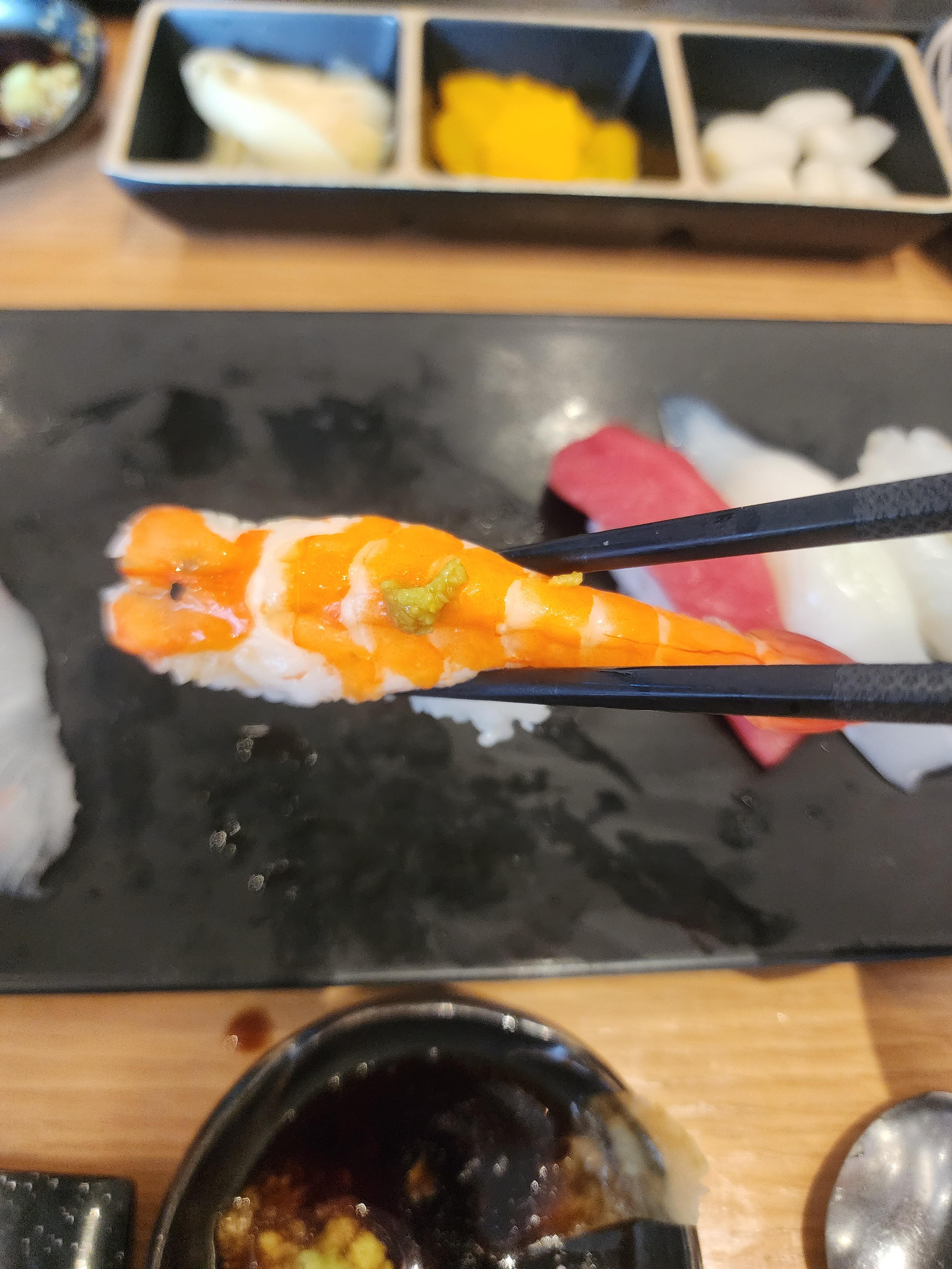 예전에는 새우 초밥이 짱이었지만 이제는 다른 초밥의 맛을 깨달아서 저한테는 뒤로 밀린 초밥이죠. (하하)