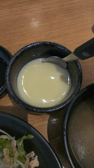 그리고 애피타이저로 샐러드와 계란찜이 나옵니다.