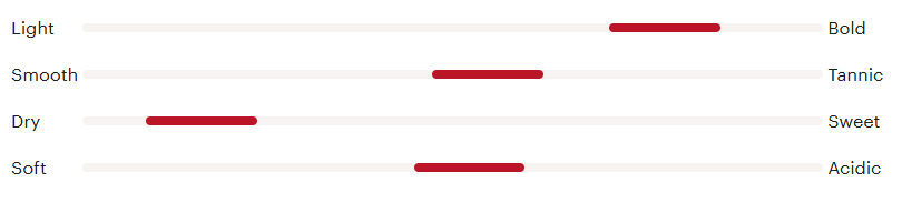 바디감은 높은 편이고, 탄닌감과 산도는 중간 정도이며, 드라이한 와인입니다.