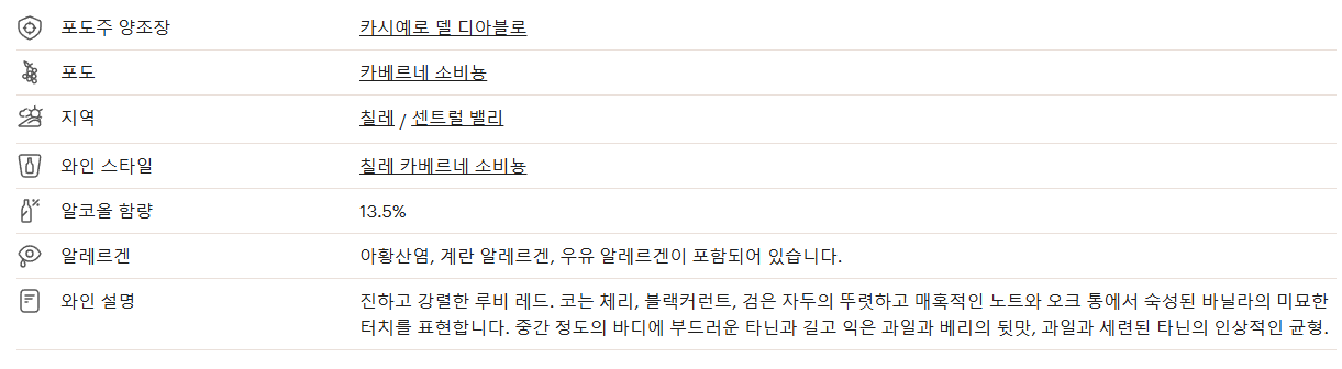 디아블로 카베르네 소비뇽 테이스티 노트입니다.