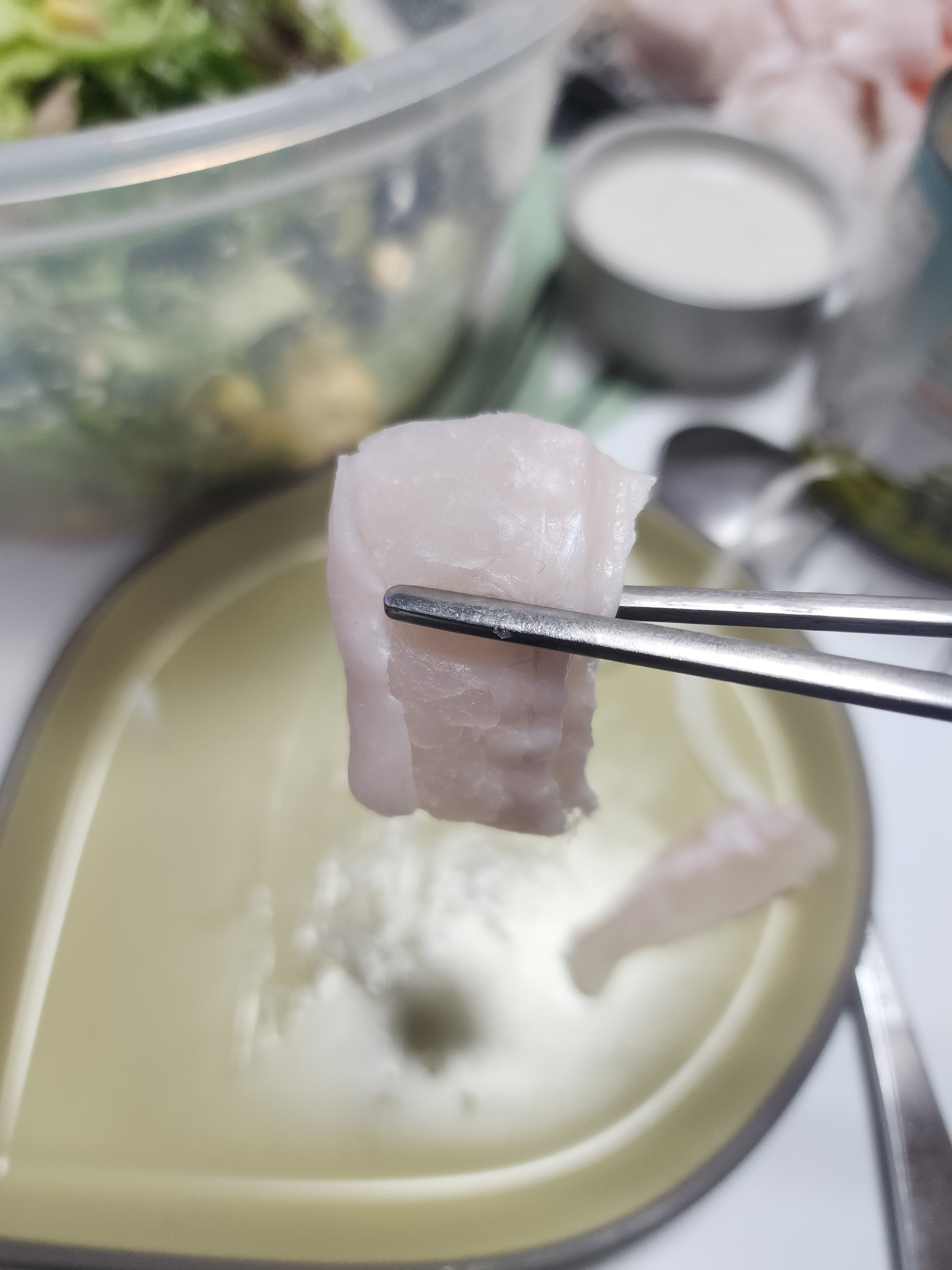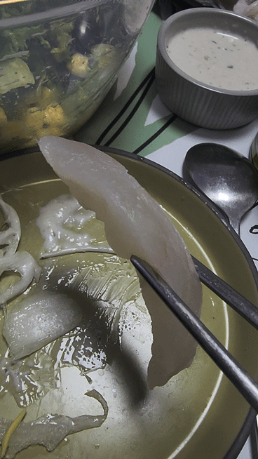 식감은 역시 좋지 못하였고 비린 맛은 좀 괜찮아지는 것 같았는데 끝에 비린맛이 치고 올라옵니다.