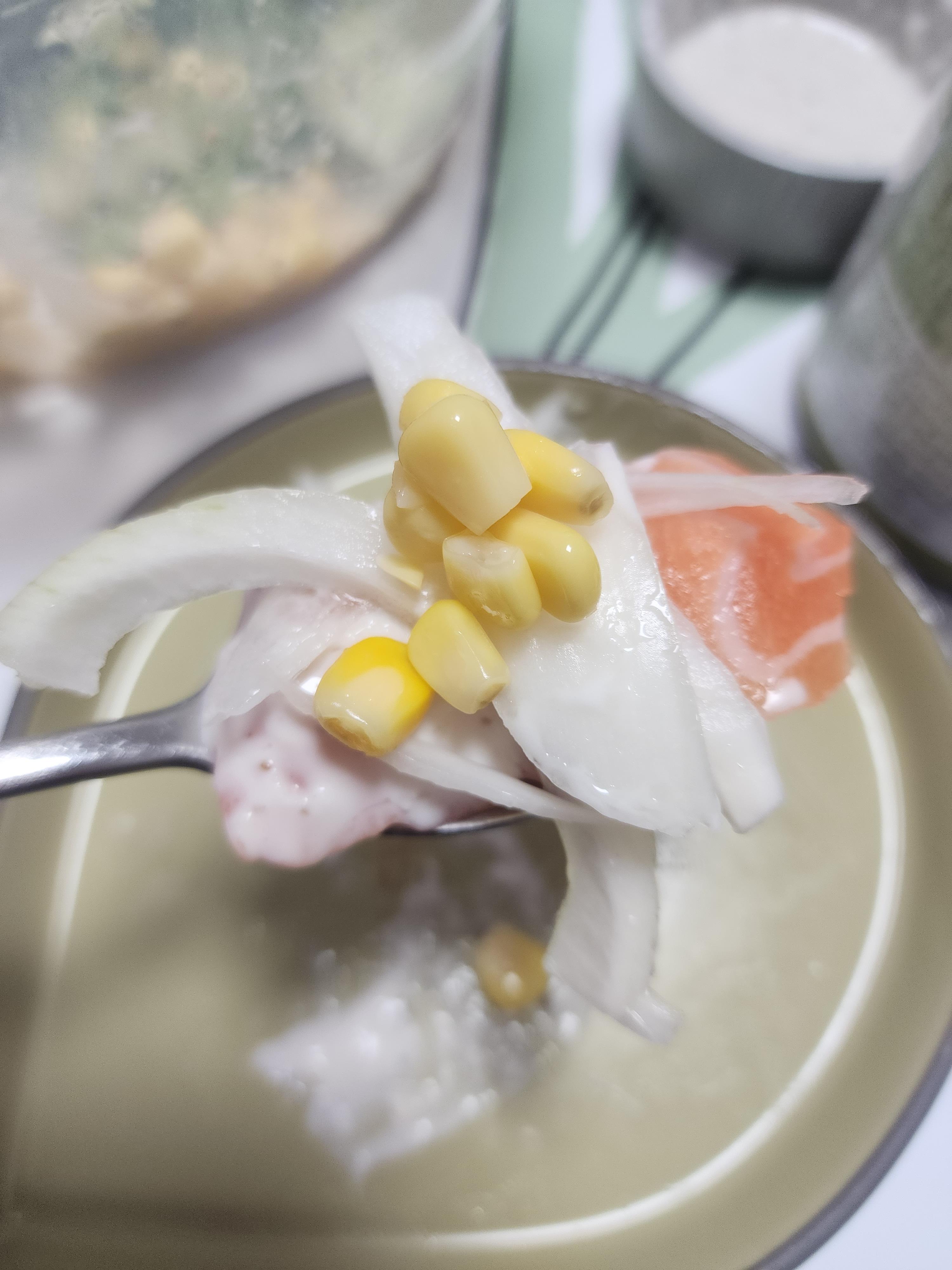 옥수수의 식감이 더해지니 더 맛있게 느껴졌습니다.