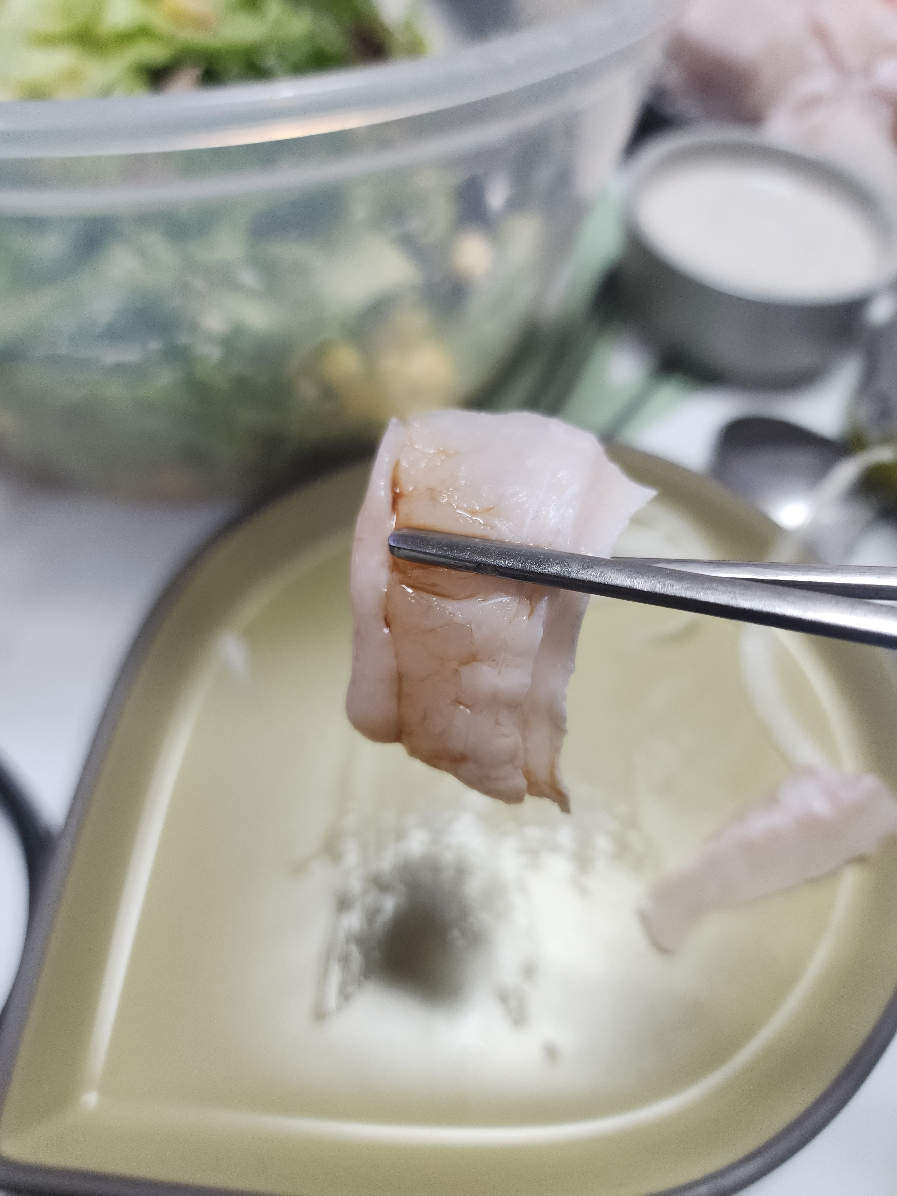 광어 지느러미 역시 비린 맛이 나고 식감이 좋지 않습니다.