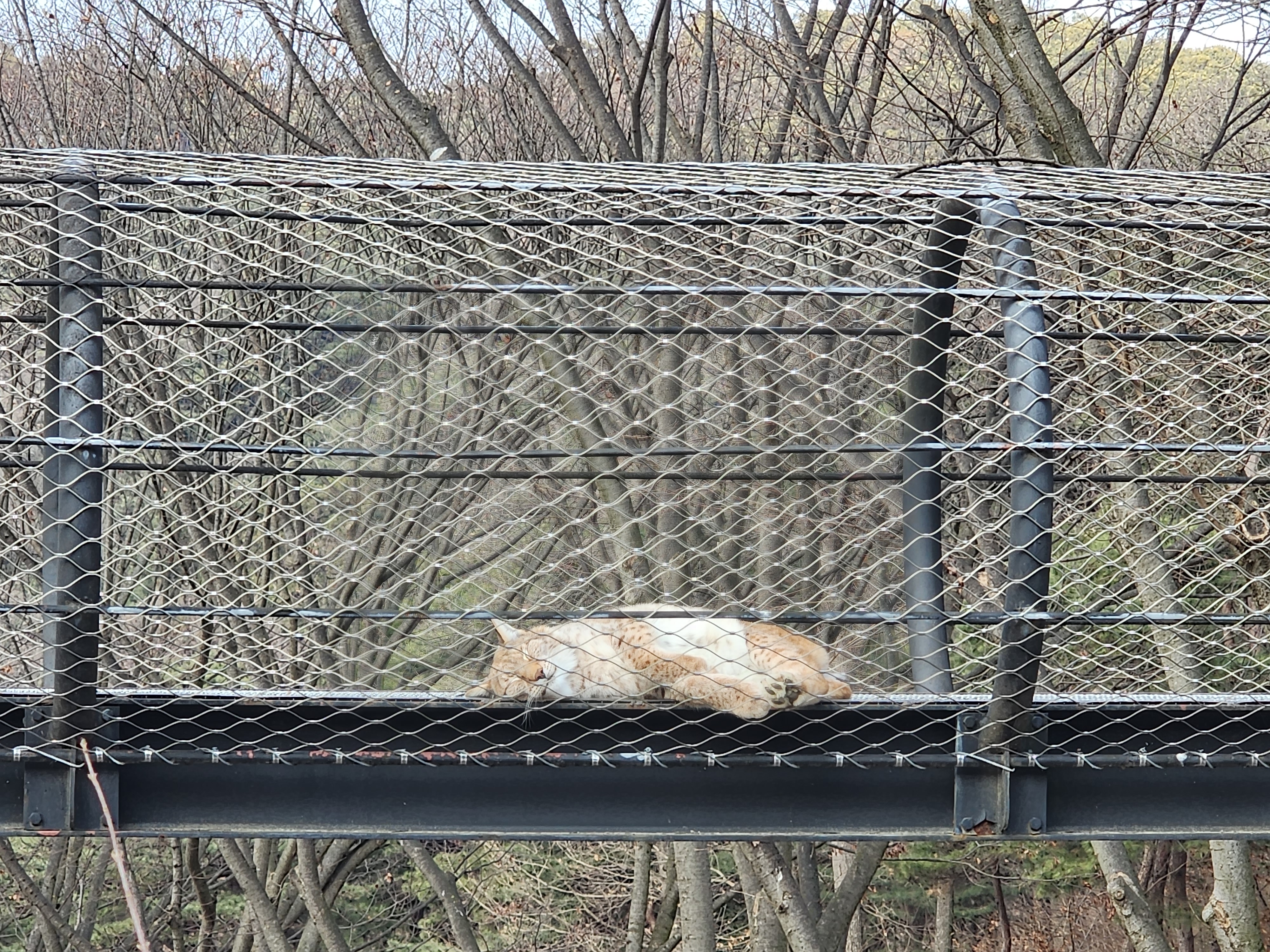 안내판을 따라서 가는데 스라소니가 자고 있습니다.