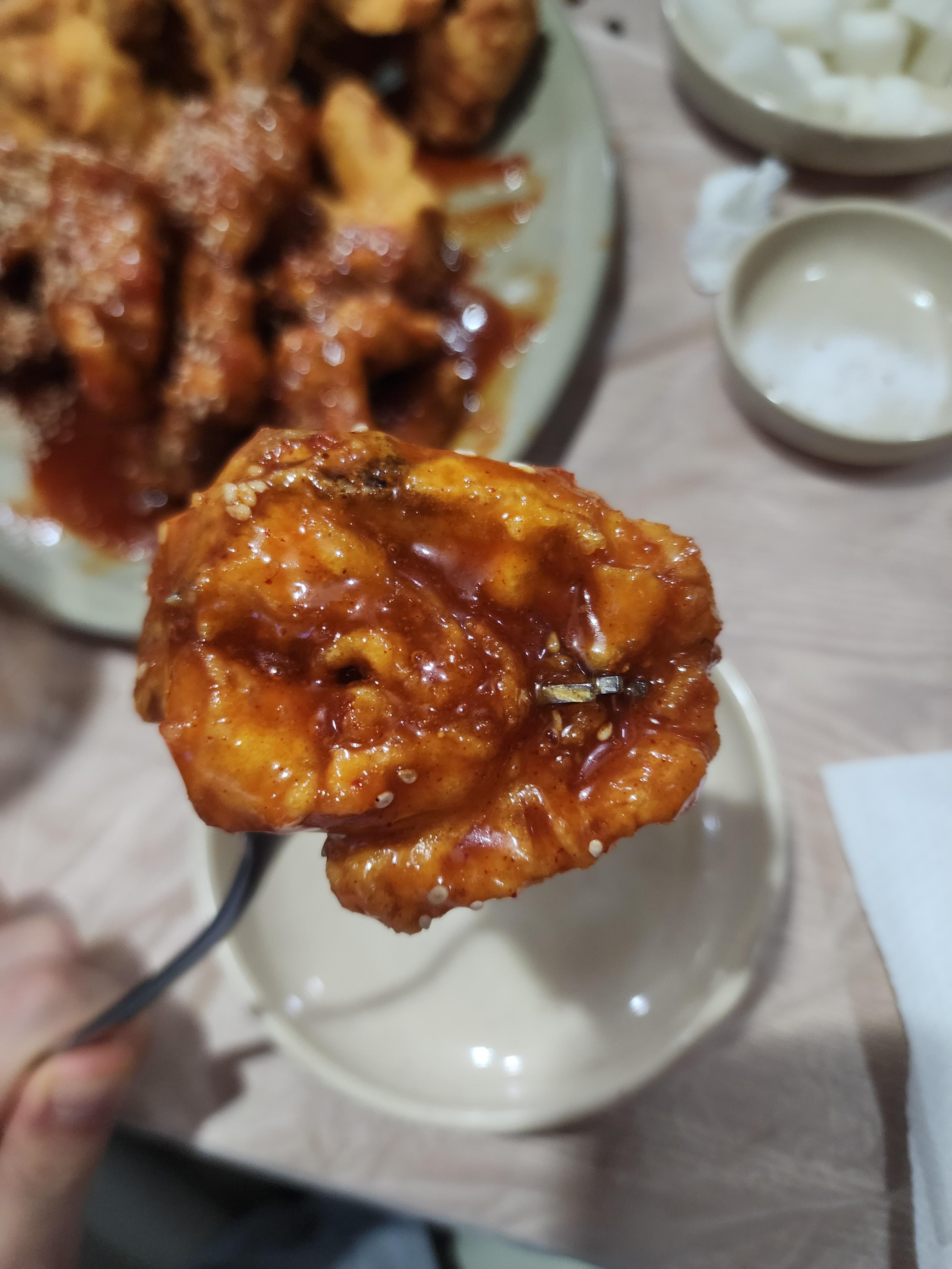 그다음 양념 치킨을 먹었습니다.