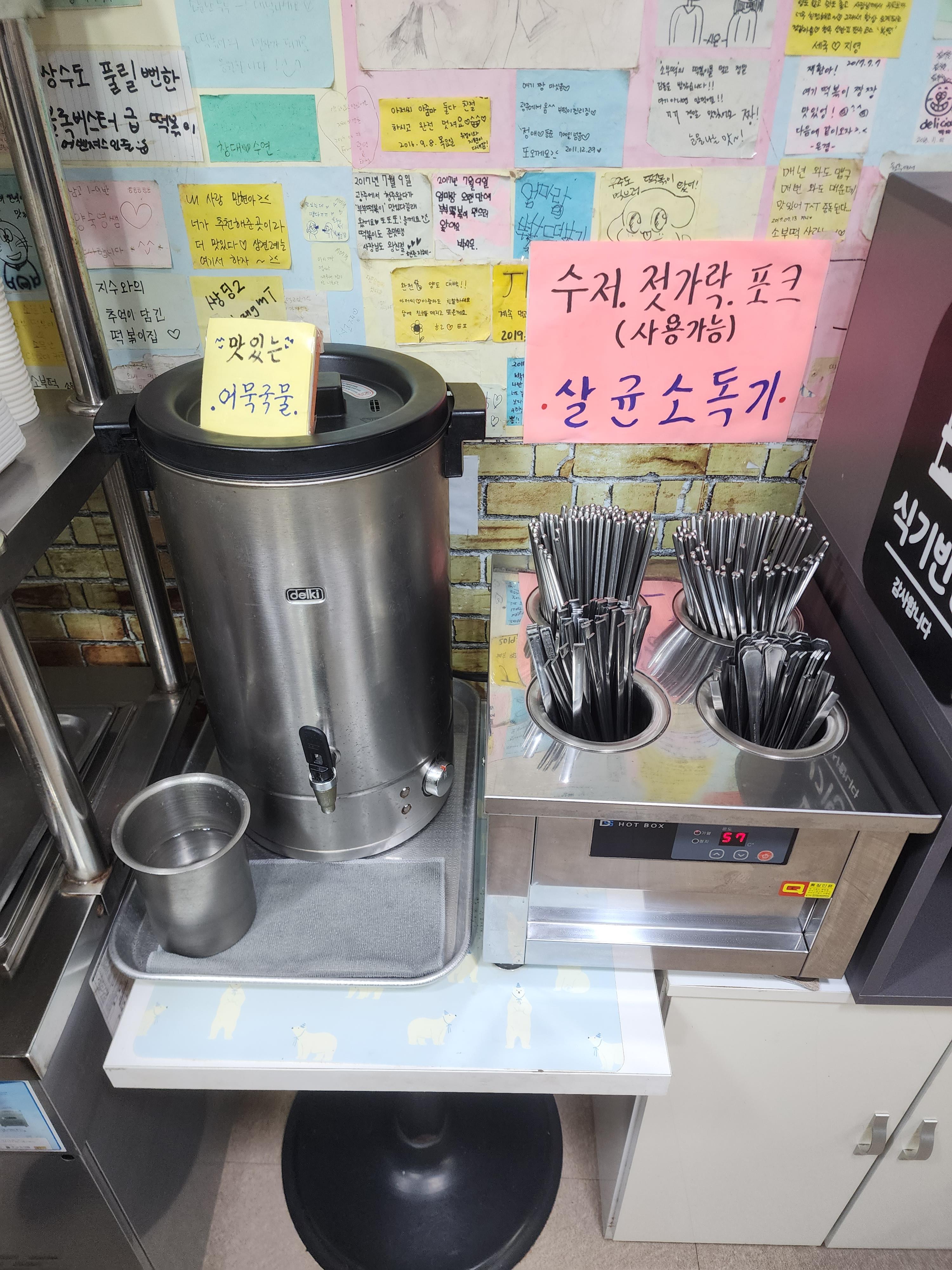숟가락과 젓가락도 셀프바에서 챙겨 가야 합니다.