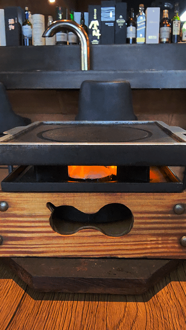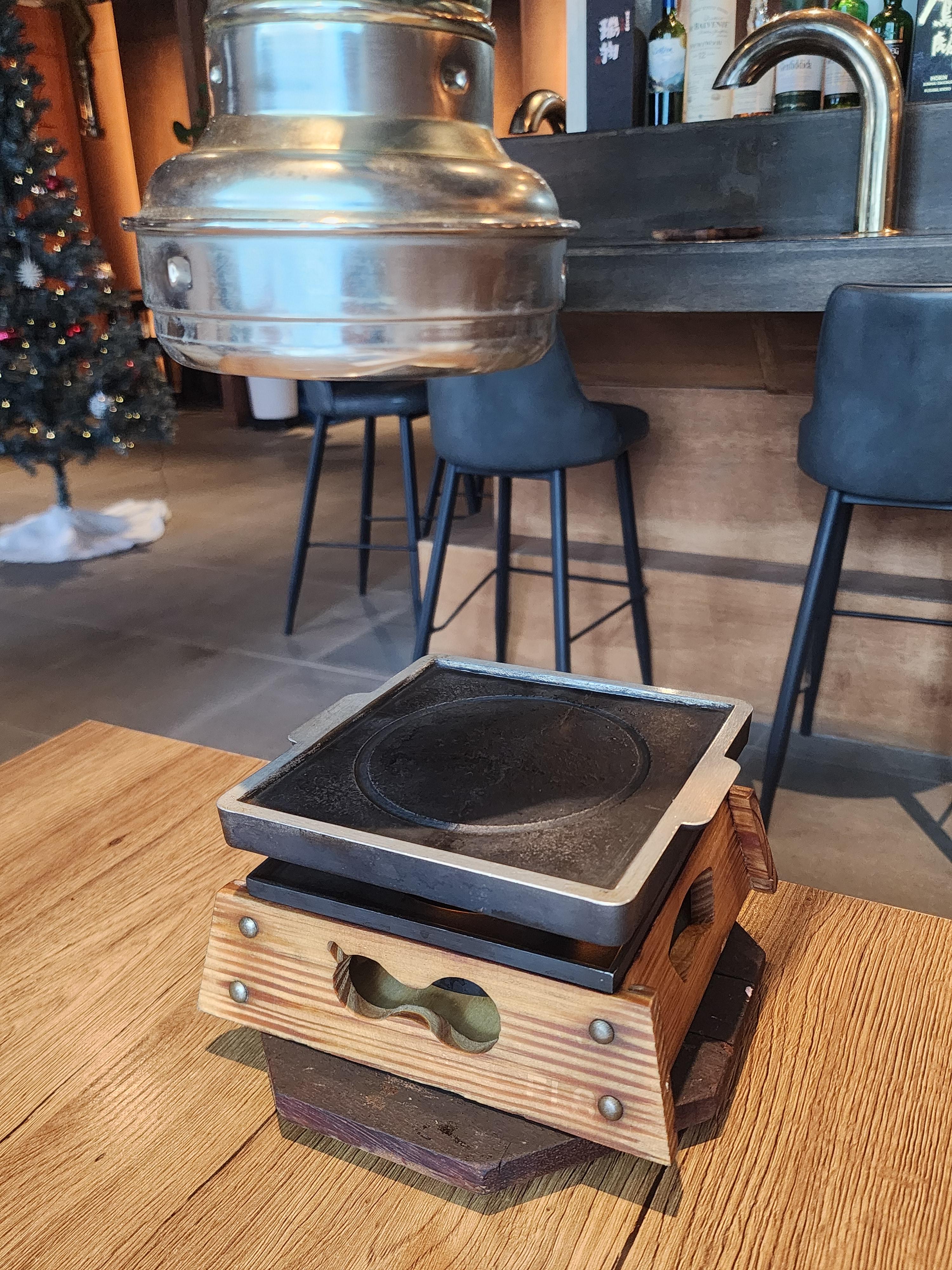 음식이 나오기 전 화로가 나와서 불판을 데워둬서 바로 규카츠를 구울 수 있습니다.