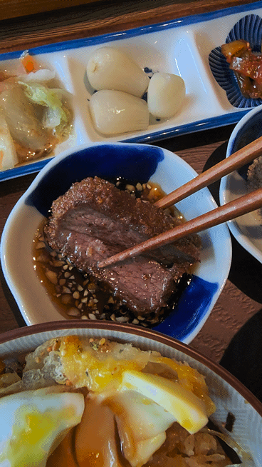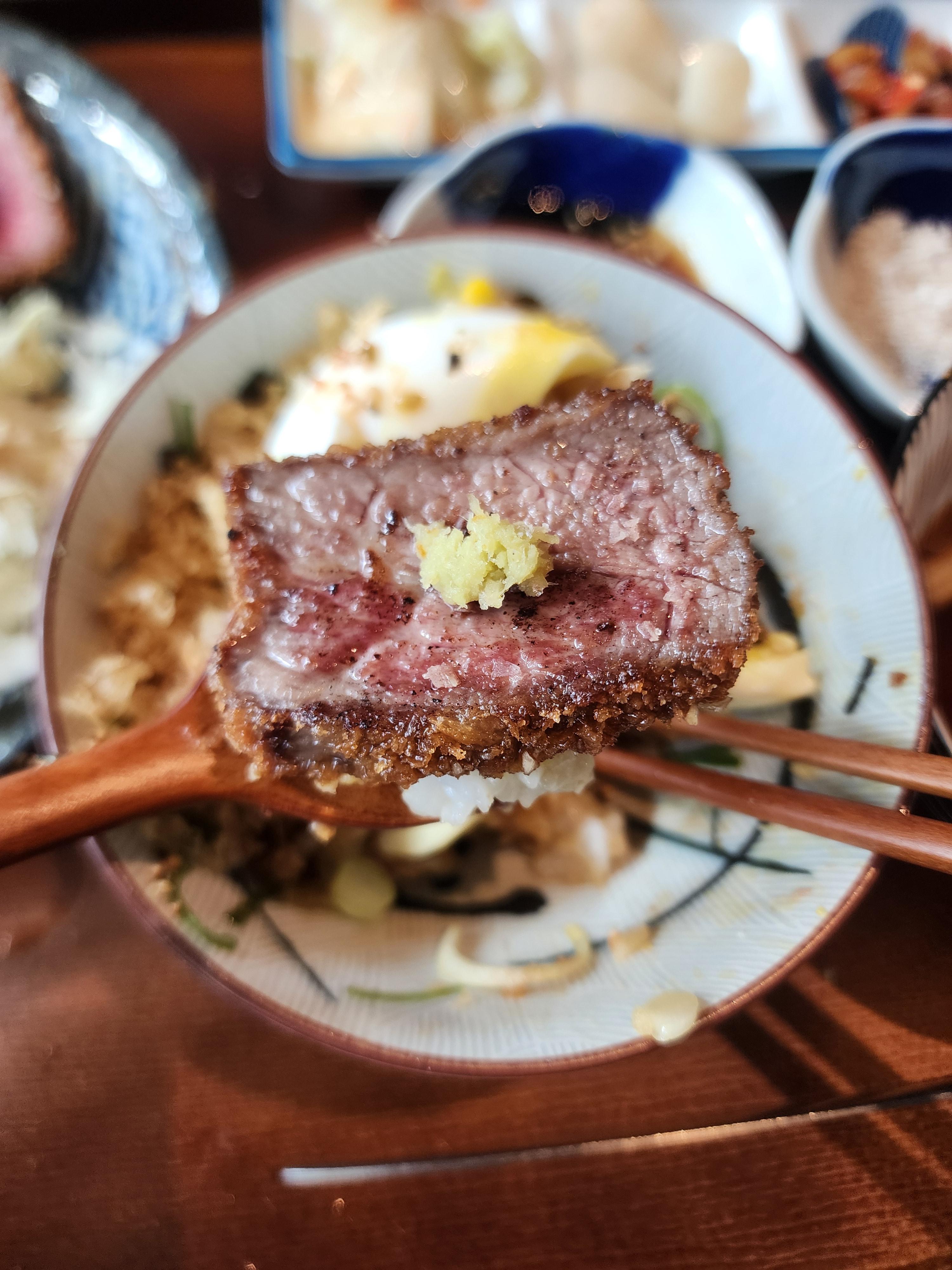 규카츠의 풍미와 식감이 밥이랑 함께 하니 아주 맛있습니다.