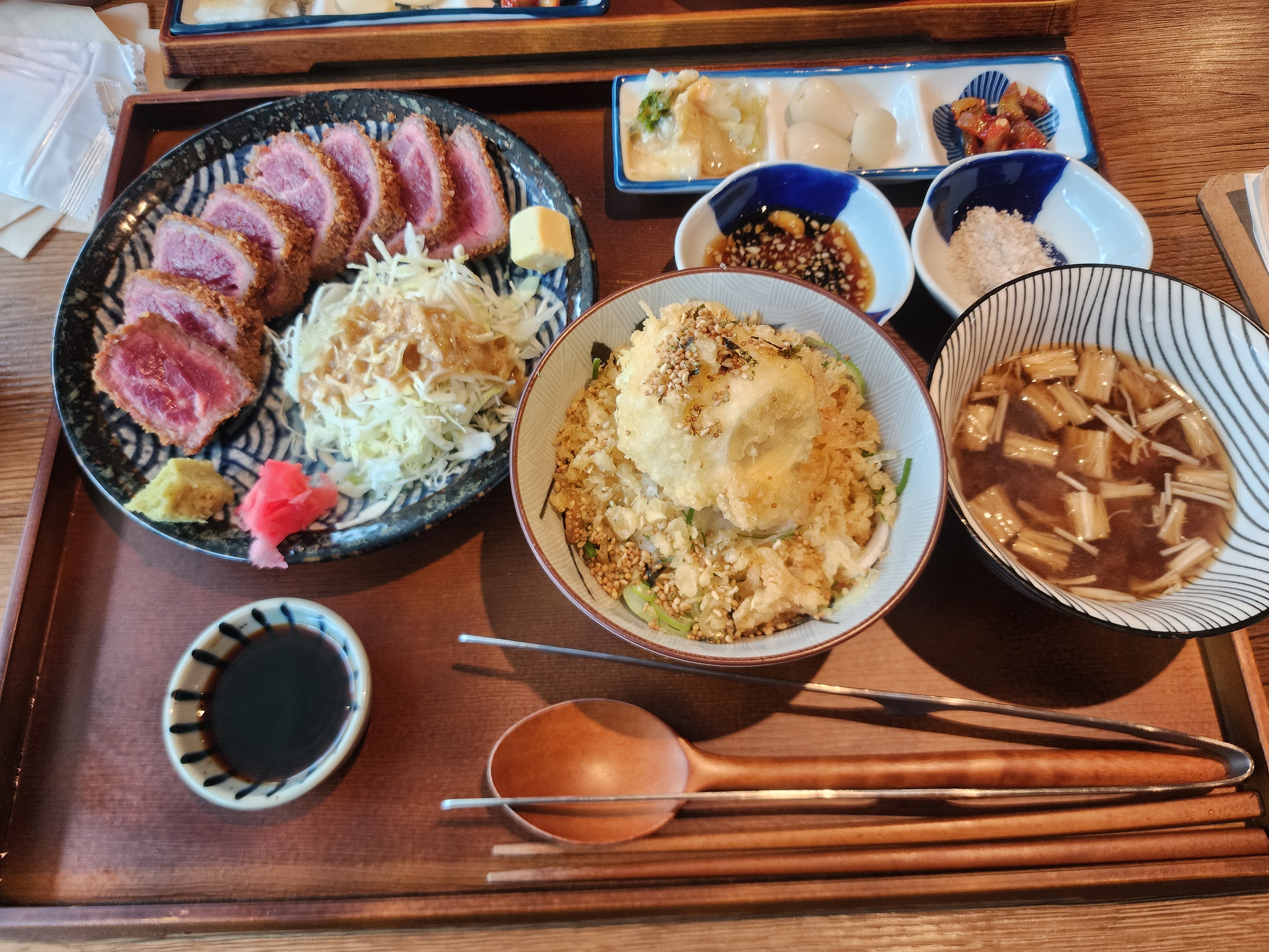 소금에 찍어서 먹으니 규카츠 맛을 좀 더 진하게 느낄 수 있어서 좋습니다.