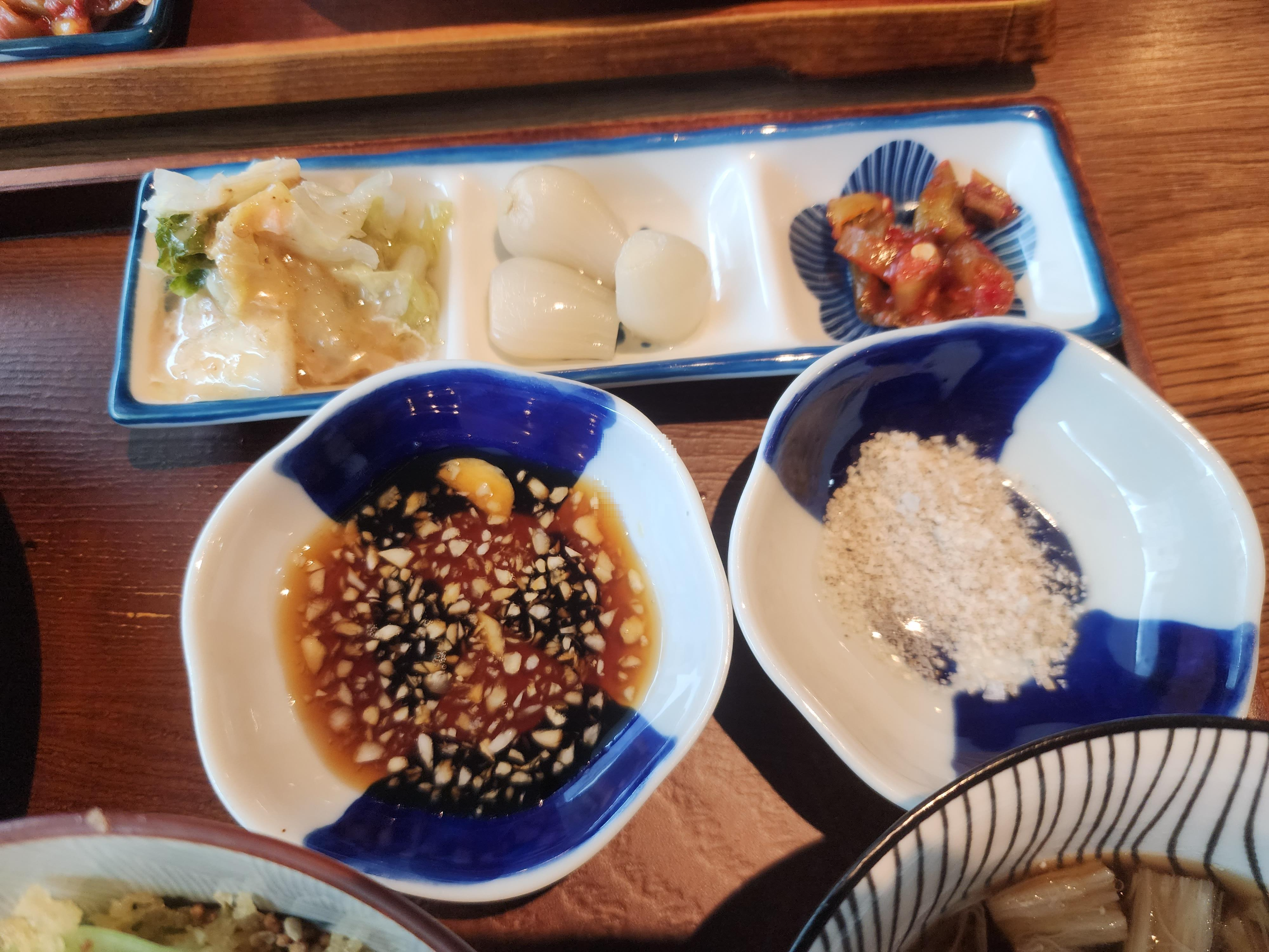 반찬은 세 종류, 소스 하나와 소금이 나옵니다.