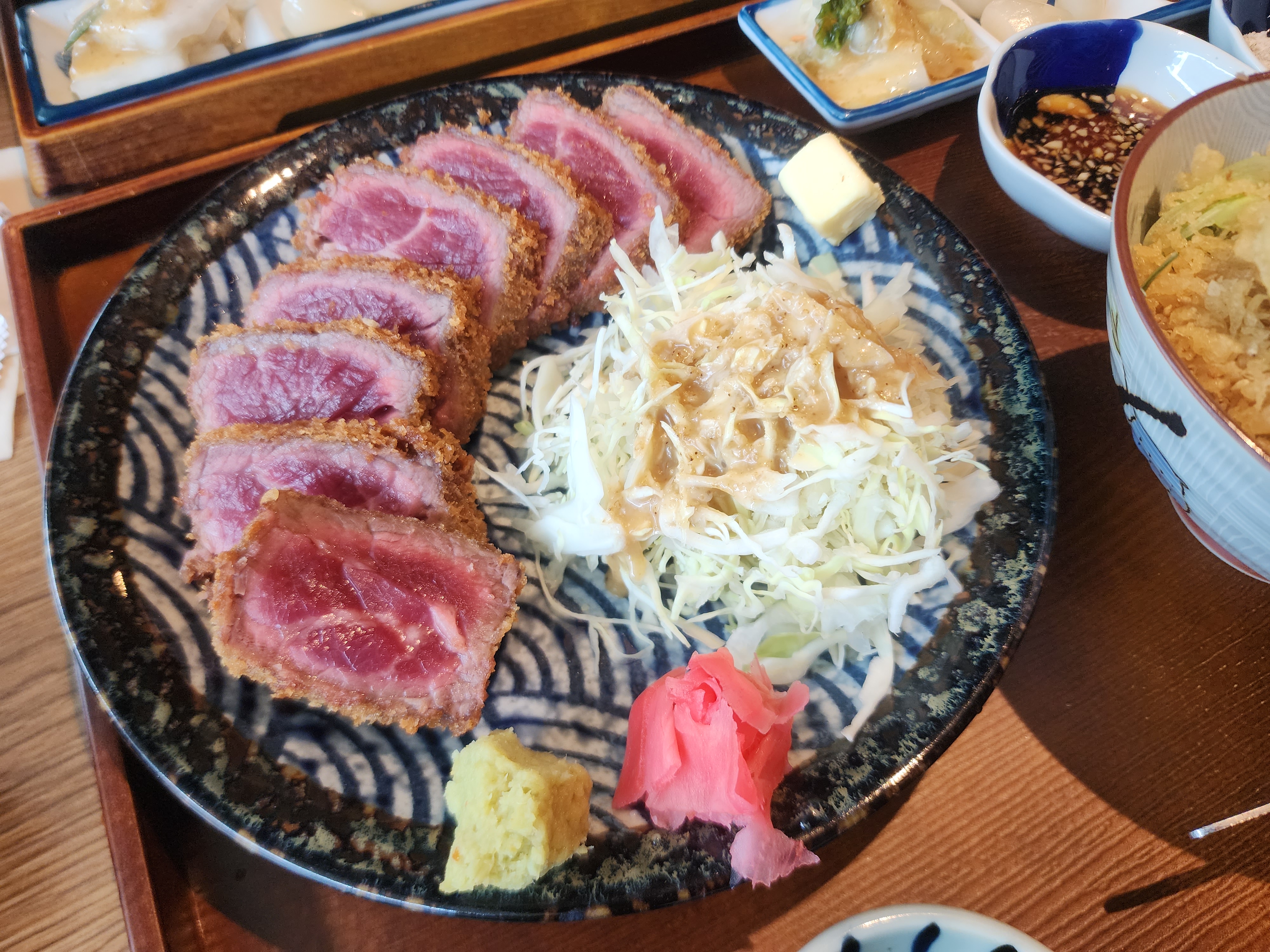 규카츠를 이렇게 두툼하고 크게 먹은 것은 처음인 것 같습니다.