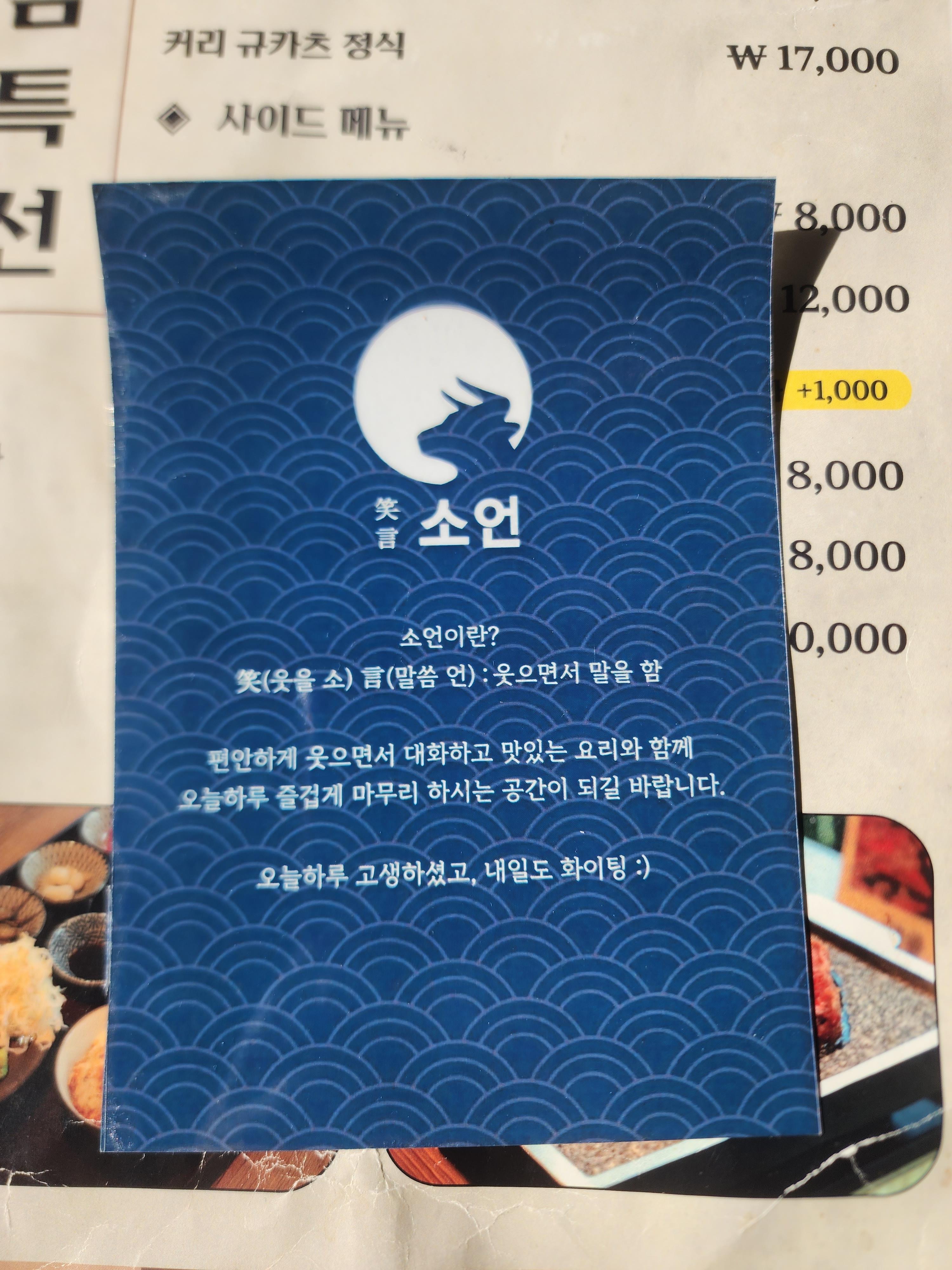 식당 이름은 소언이고 웃으면서 말을 한다는 뜻이라고 하네요!!