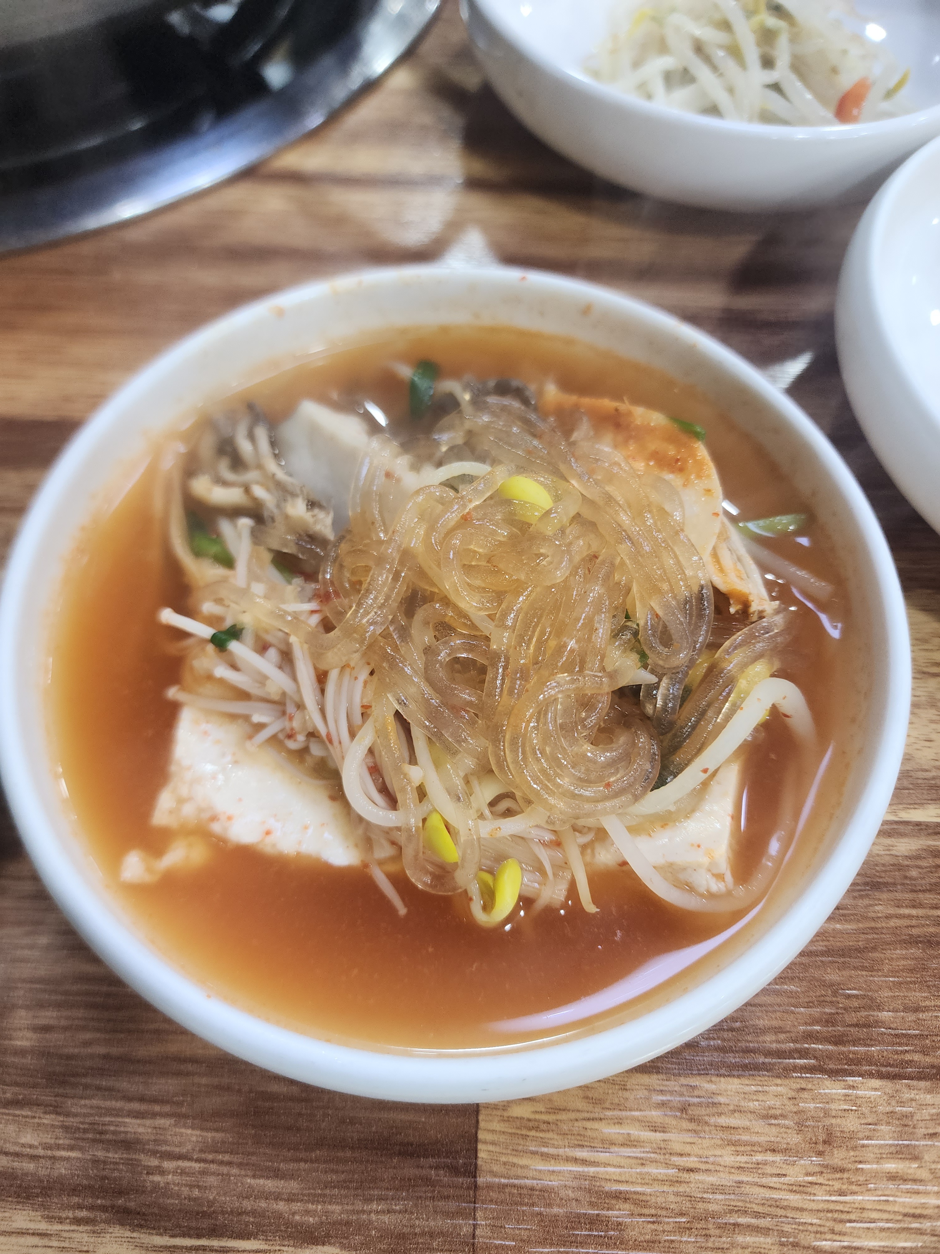 콩나물과 버섯 때문에 식감이 좋고 당면은 국물을 머금고 있어서 맛있습니다.