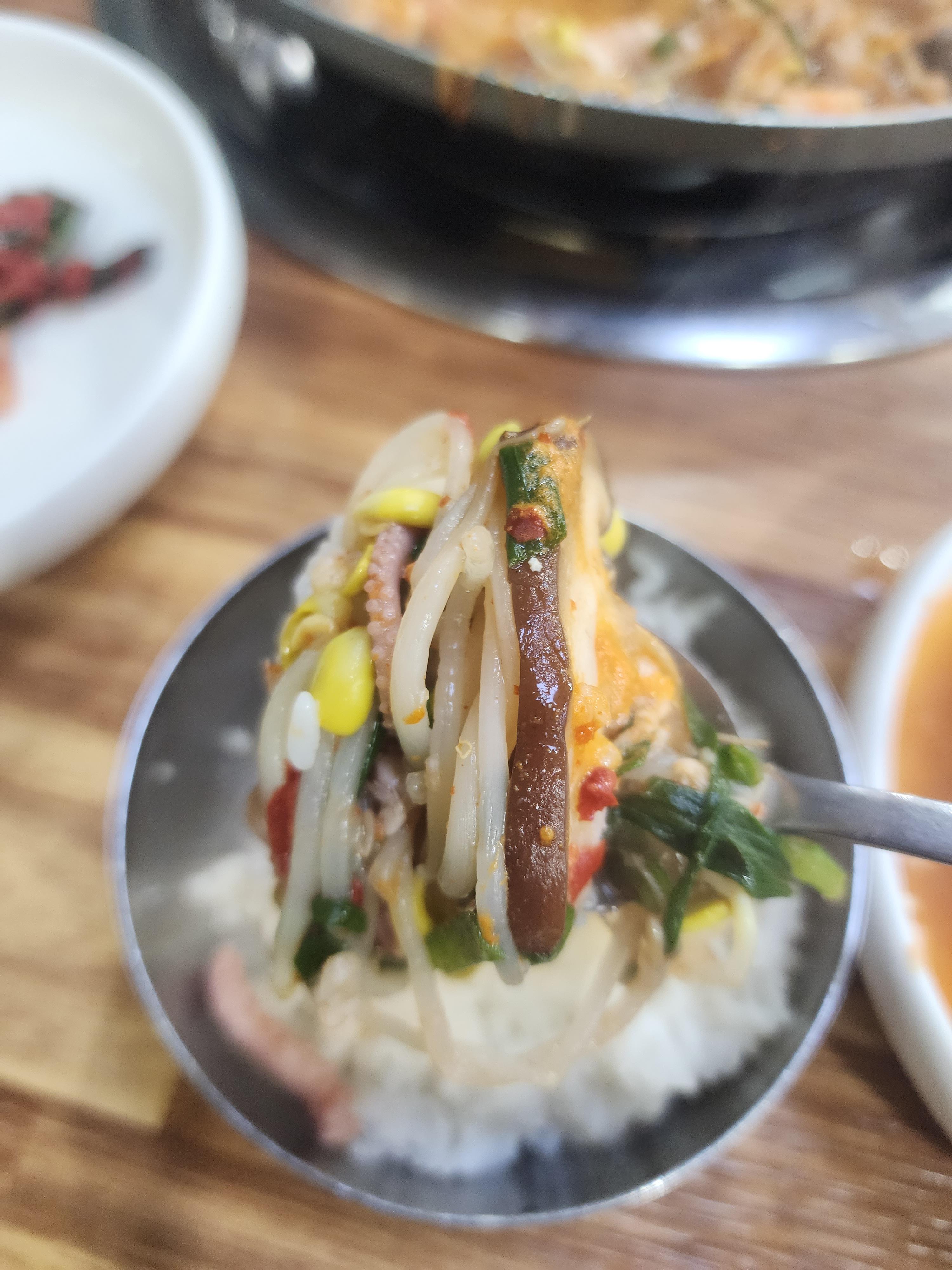 살짝 쫄은 전골 덕에 건더기 맛이 더 진해져서 밥과 잘 어울렸습니다.
