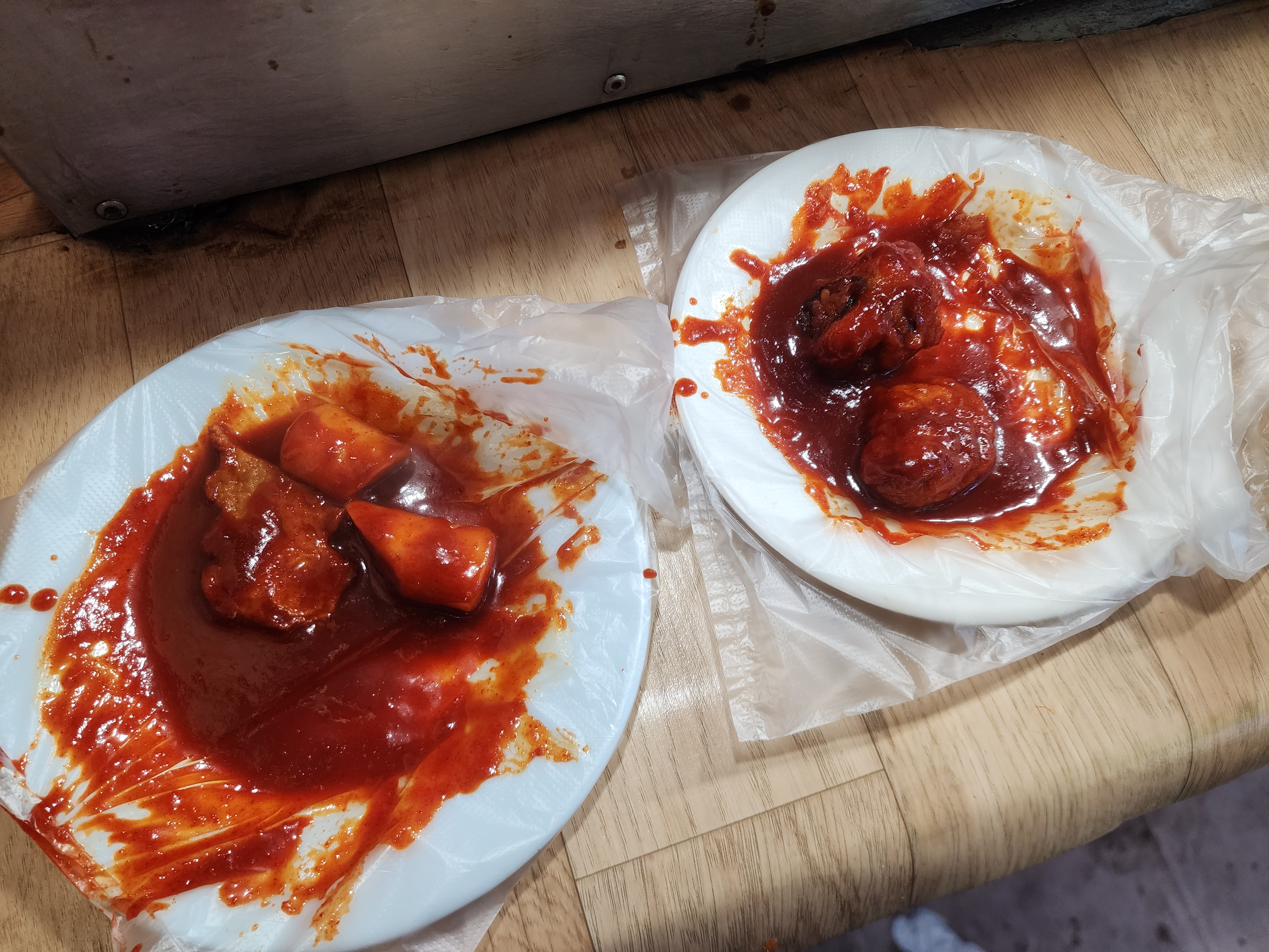 왼쪽은 떡볶이, 오른쪽은 튀김입니다.