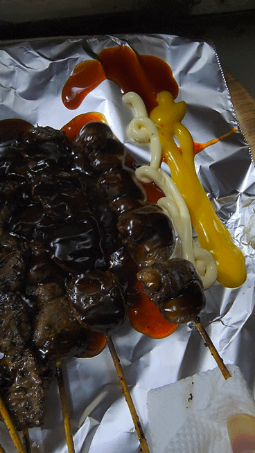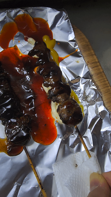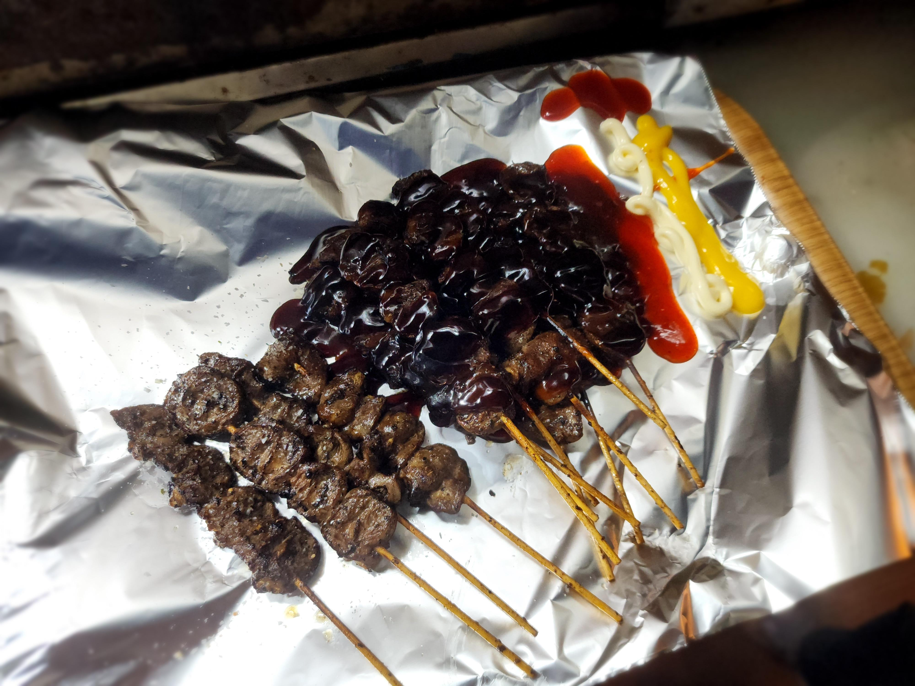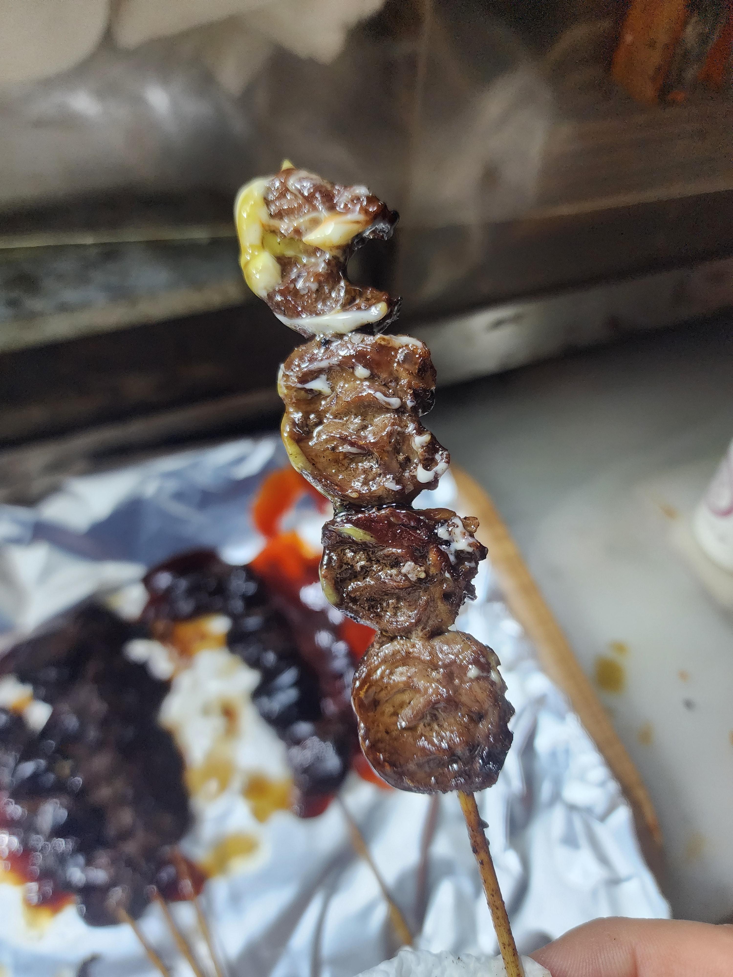 주문한 염통꼬치가 나왔습니다.