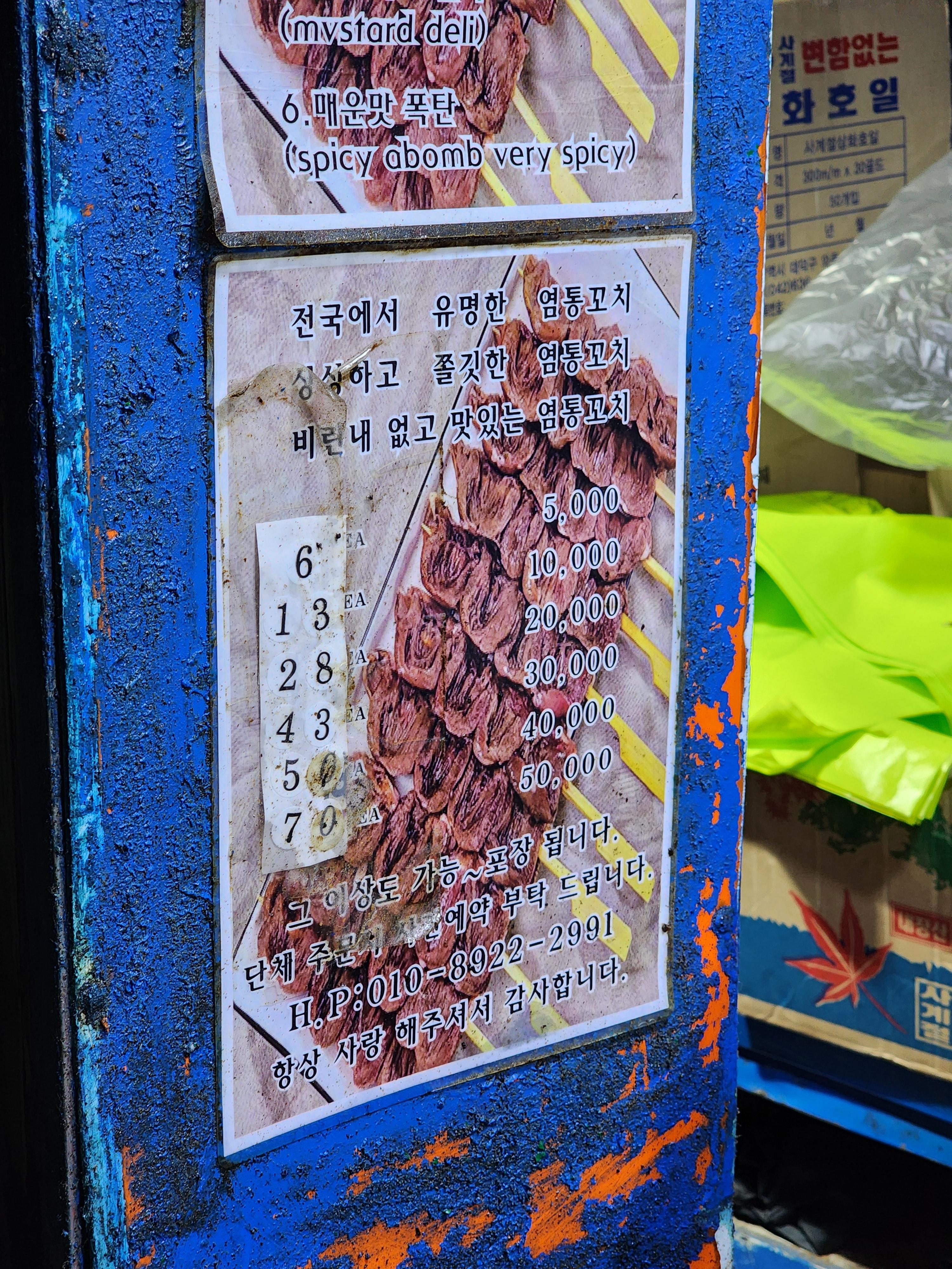 염통꼬치 포장마차 가격입니다.