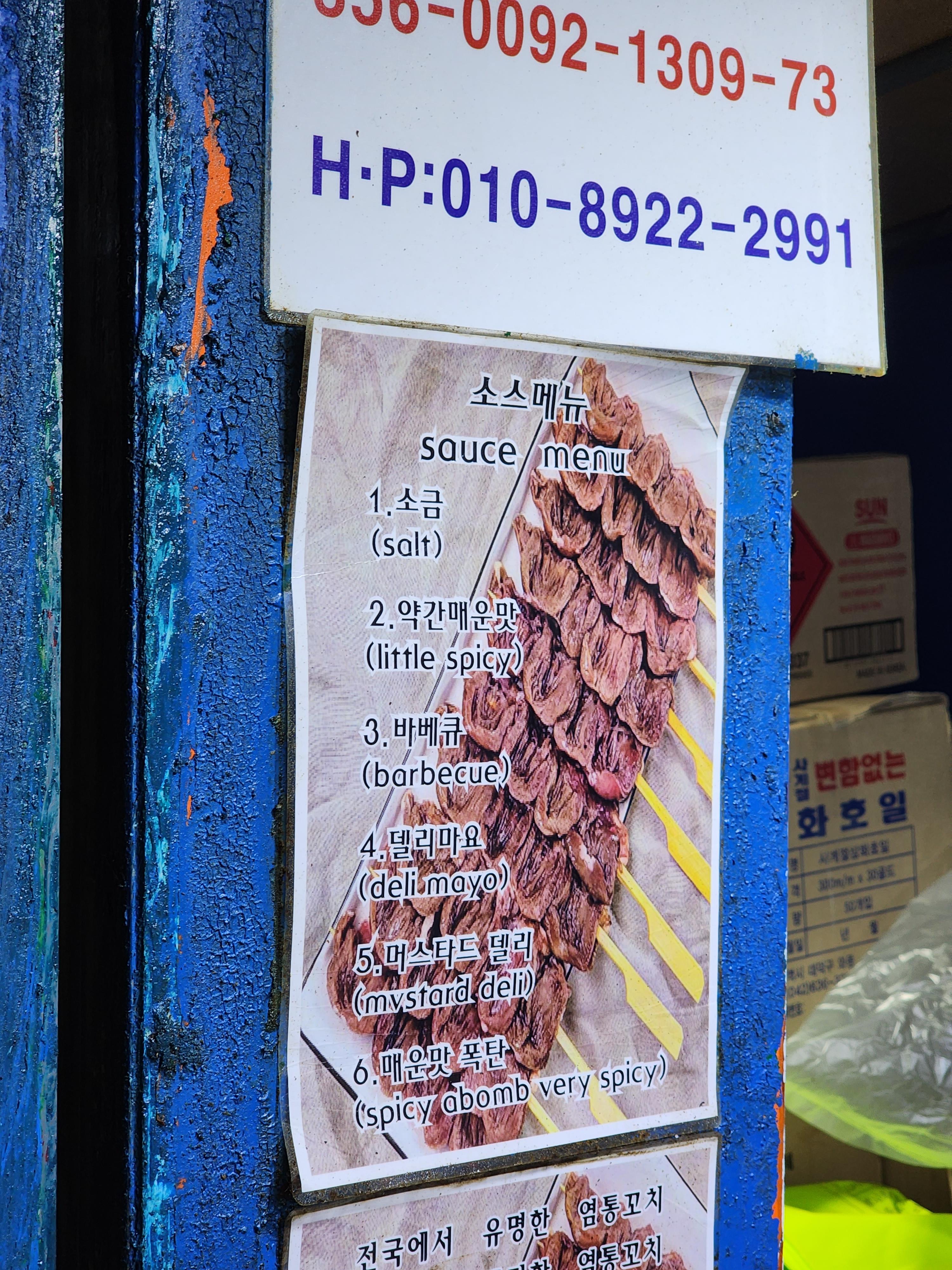 염통꼬치도 맛있었고 가격은 보통 정도였지만 소스가 다양해서 좋았습니다.