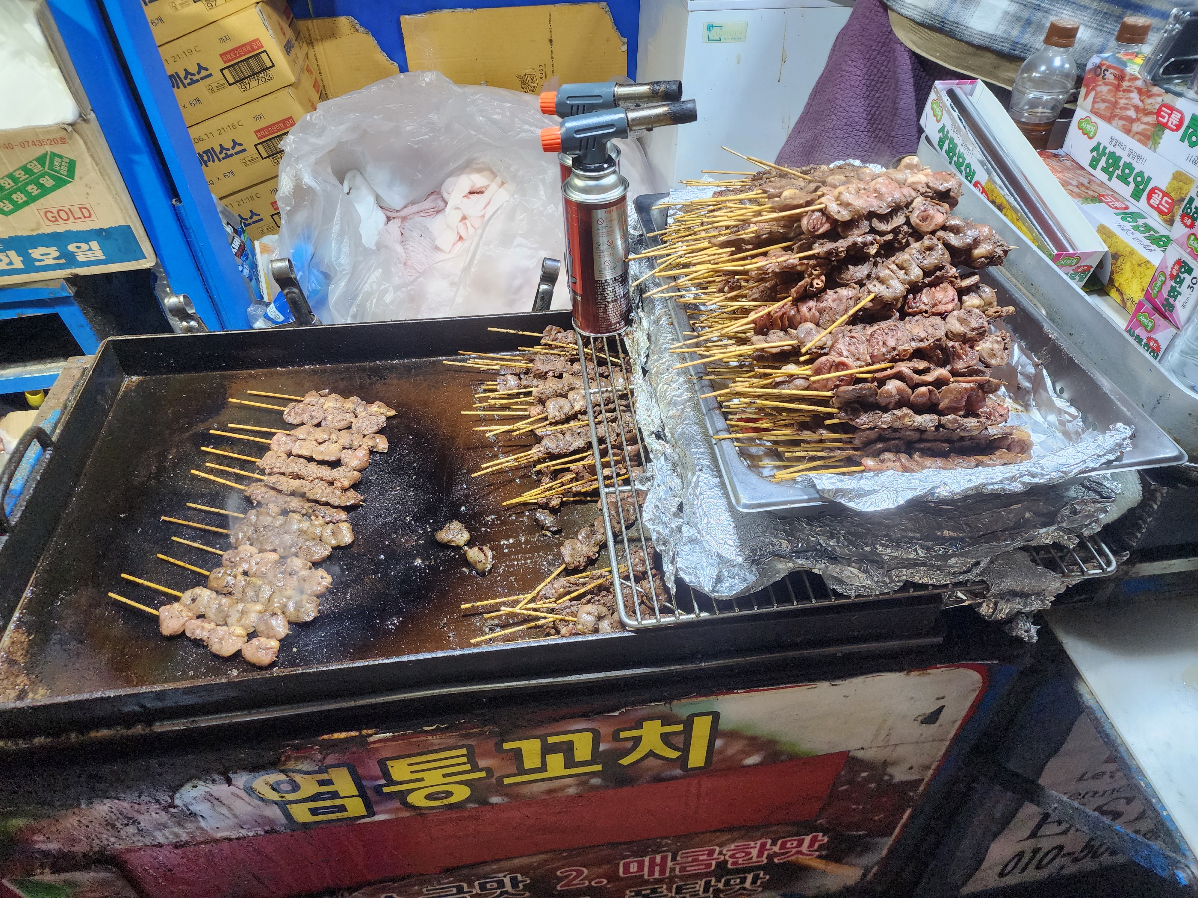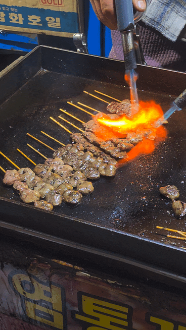 이제 주문한 염통꼬치를 바로 앞에서 구워주십니다.
